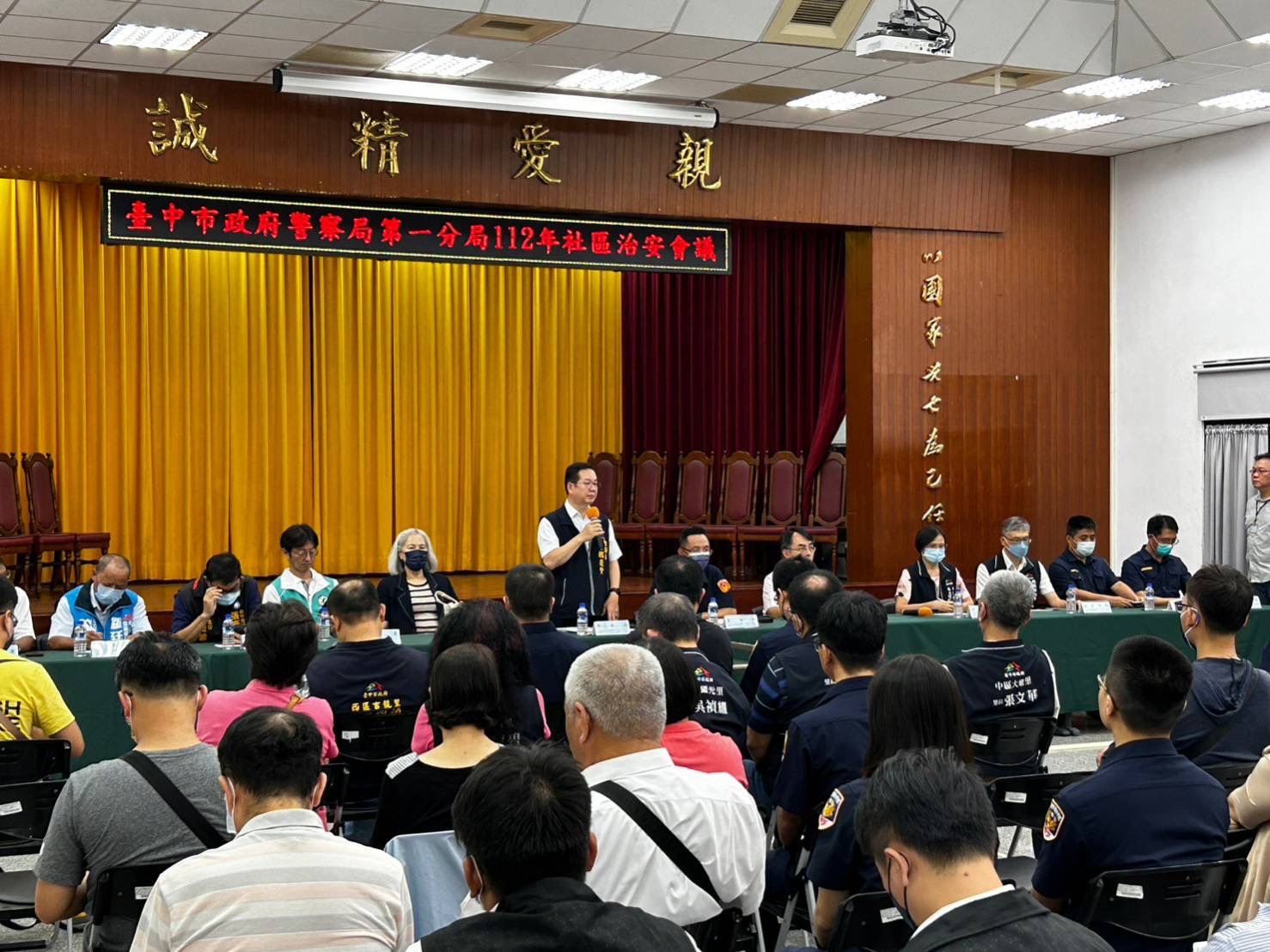 臺中市政府警察局第一分局積極推動「社區警政再出發」工作,提升警民合作效能,日前舉行112年度社區治安座談會議,由中市警一分局長吳燕山親自主持、中市警局副局長魏慶賢親臨列席指導,並邀請轄區立法委員、市議員等民意代表、臺中地檢署檢察官、地方仕紳、區里鄰長等近200位貴賓共襄盛舉,就現階段警政署所推動「社區警政再出發」及「清源專案2.0」治安工作加強行銷,期以強化社區友善通報網,就打詐、反毒展開積極作為;另針對112年「臺中好行 你我同行」行人正義大執法,相關重點工作項目進行宣導,不啻藉由座談會宣示社區反毒及打擊詐欺之決心,更透過多部生動宣導影片讓與會貴賓瞭解當前治安與交安執行方向,互動交流,強化合作。