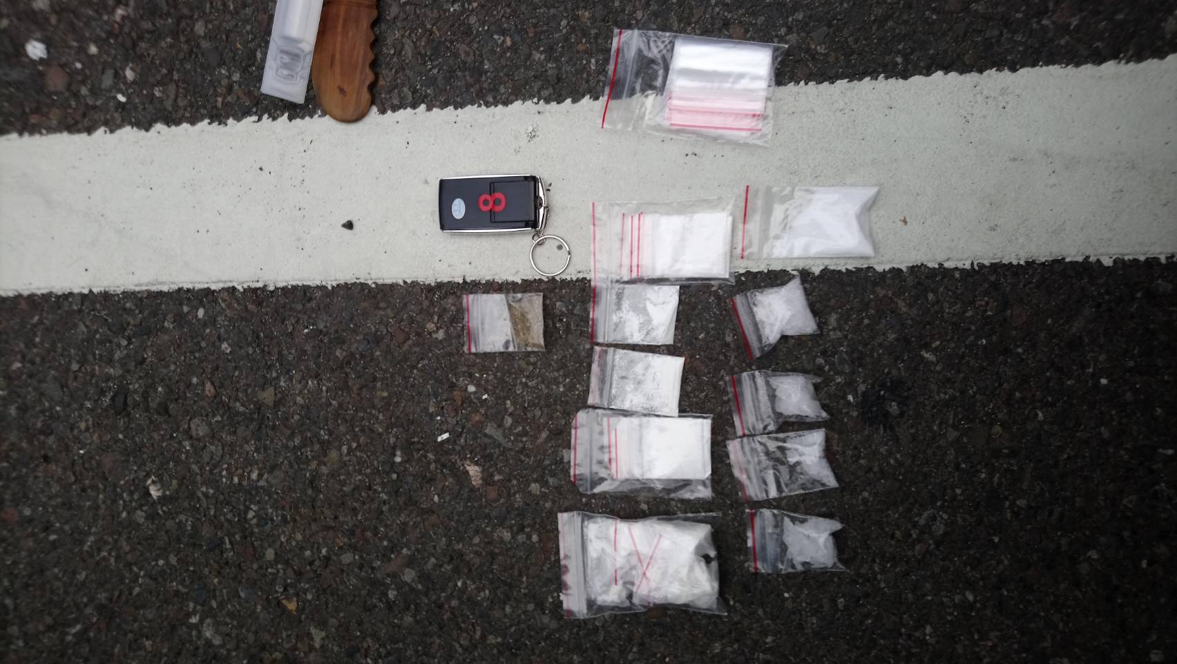 經追蹤發現,陳嫌最後將車停放於臺中市東區一家汽車百貨商場停車場,並下車進去逛商場,員警見其離開車輛,機不可失,即尾隨進入,見商場內顧客少,於歹徒放鬆警戒逛大街時,即趨近表明警察身分、迅速控制犯嫌、帶出商場,再於其車內、後行李箱夾層等處搜出眾多第一、二級毒品,計查扣海洛因19包(含袋重25.6公克)、安非他命4包(含袋重11.94公克、大麻1包(含袋重0.41公克)、注射針筒一批、分裝袋一批、磅秤、手機、新臺幣4萬1千2百元等證物,成功完成追捕,全案經臺中地檢署檢察官偵結後,以違反毒品危害防制條例第4條第1、2項規定起訴在案,最輕本刑為10年以上有期徒刑,得併科新臺幣1,500萬元以下罰金。