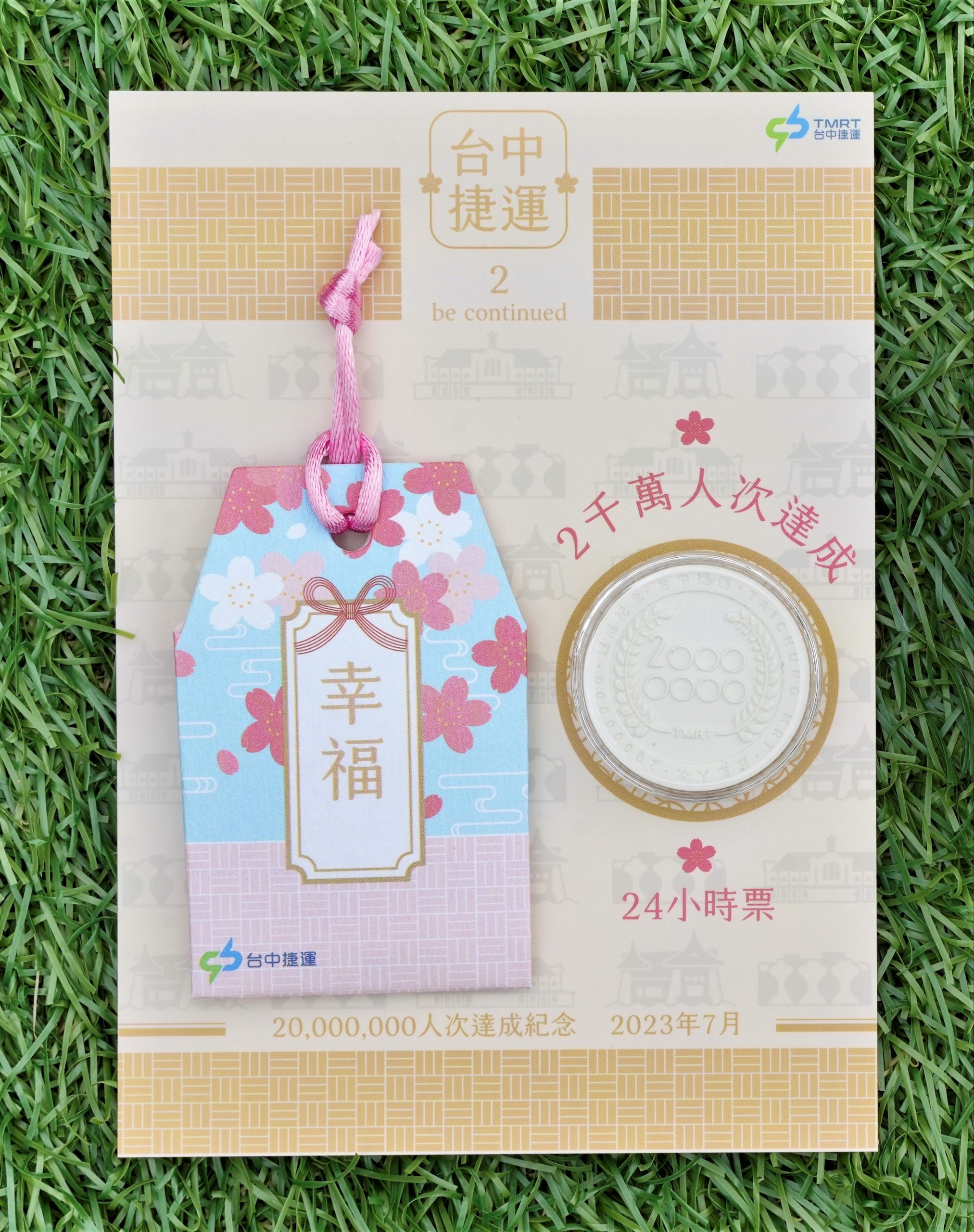 中捷公司表示,捷運綠線通車後歷經幾番波折,總運量能夠在2年多突破2千萬人次,代表旅客對中捷有信心,中捷承載著旅客的愛與信任,會努力不懈向前行。中捷也特別設計2千萬人次紀念票,票卡為純白色的Token造型,並搭配幸福御守,御守圖案為山櫻花(台中市市花)飄在湛藍色天空,呈現清新淡雅的風格,紀念票不僅極具收藏價值,啟用後24小時內還可無限次搭乘台中捷運。