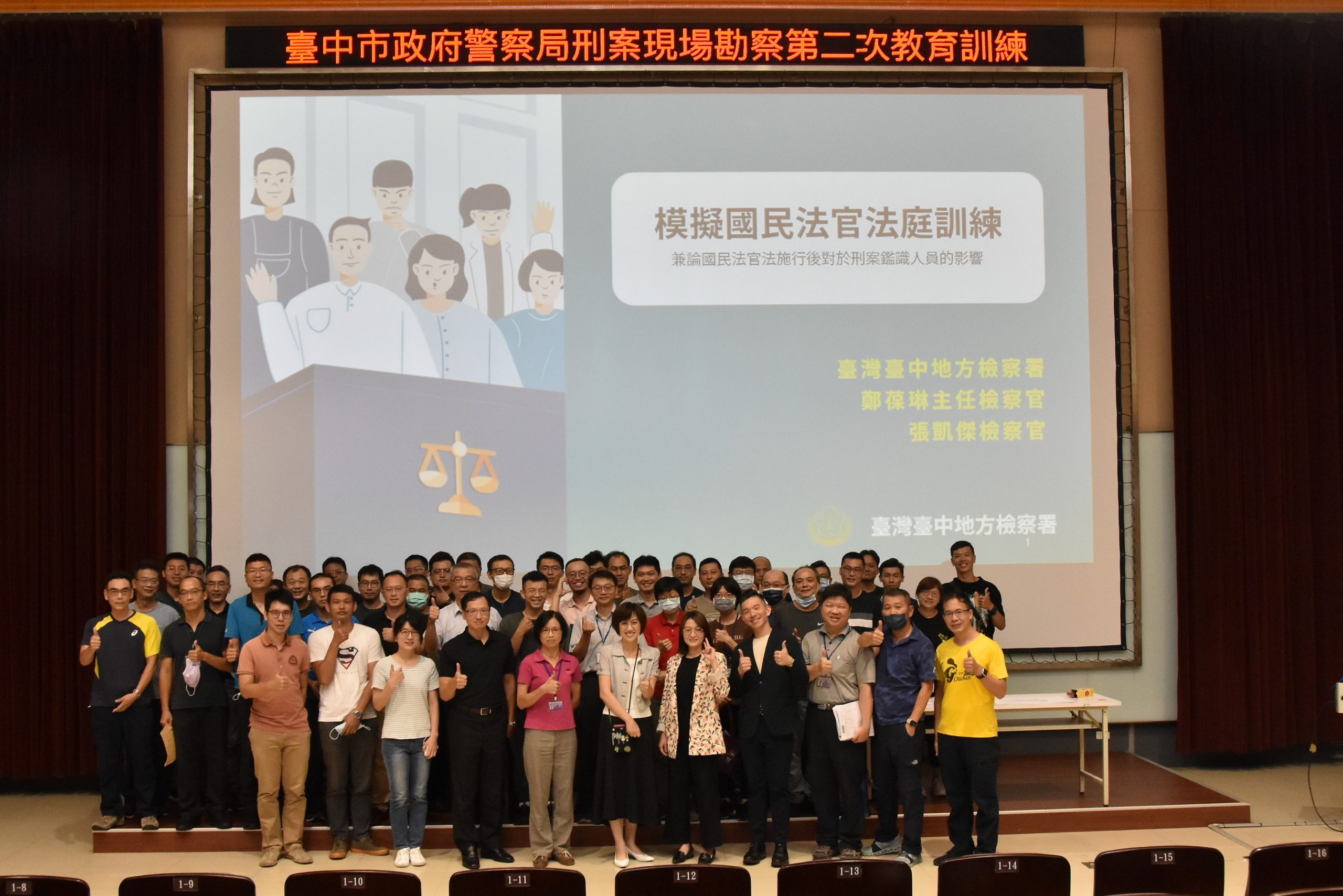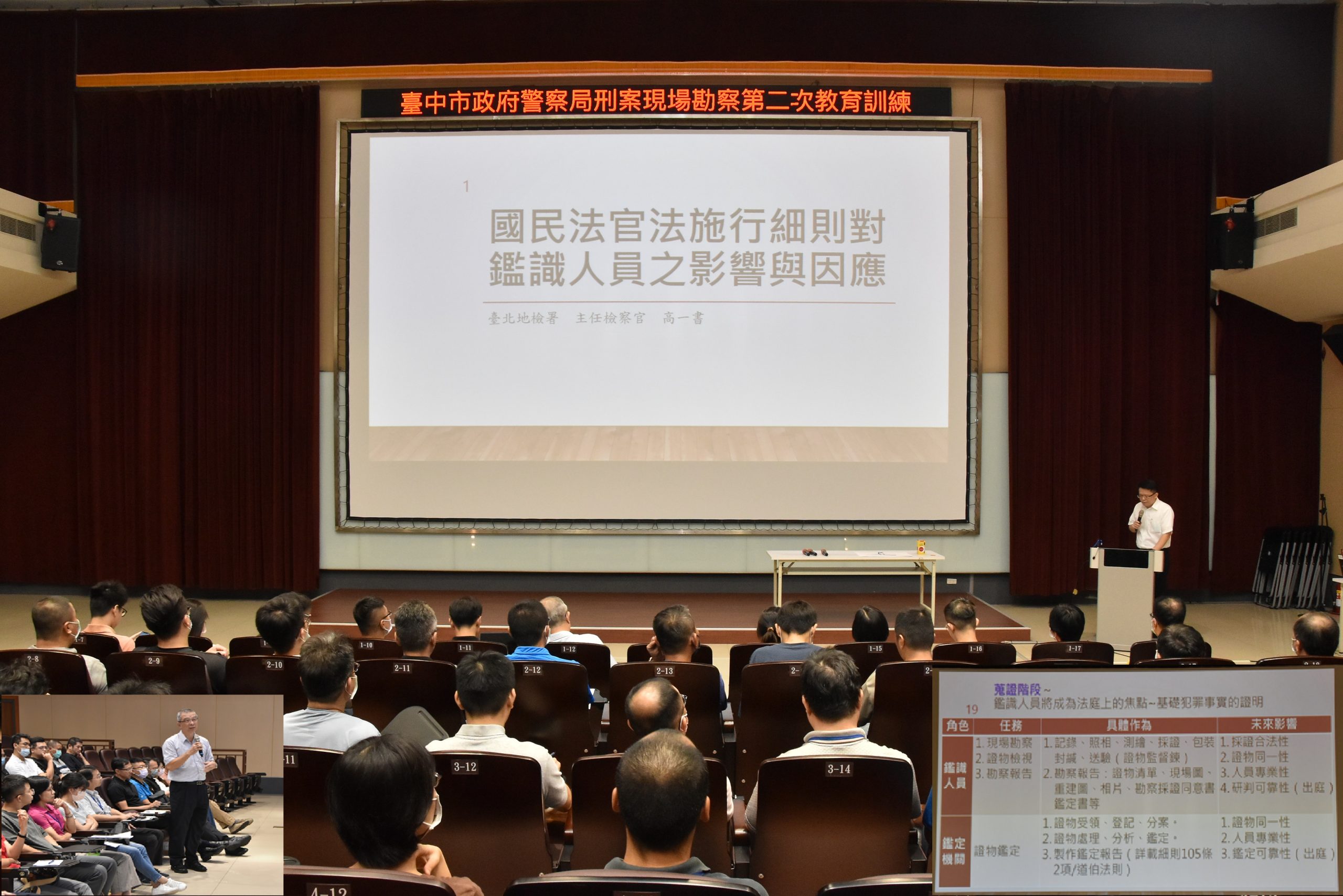 臺中市政府警察局為因應國民法官參審新制,特聘請臺灣臺中地方檢察署公訴組主任檢察官鄭葆琳、檢察官張凱傑、陳隆翔及臺灣臺北地方檢察署主任檢察官高一書(畢業於中央警察大學,曾服務於刑事警察局,是一位兼俱鑑識實務與法律的專業人才),於112年8月7及9日蒞局講授「國民法官法案件之鑑識實務探討及模擬法庭」與「國民法官法施行細則對鑑識人員之影響與因應」等課程,參訓的鑑識人員亦事先收集實務上的疑義進行意見交流。