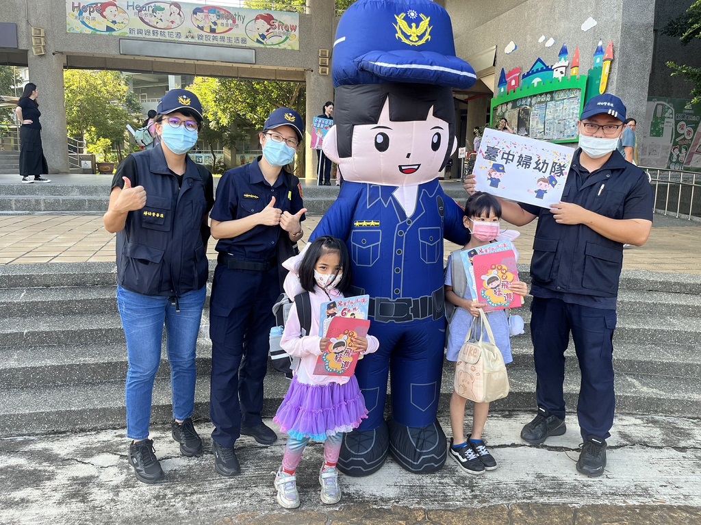 中市警婦幼警察隊與大雅分局一同召喚最受學童歡迎的Q版警察娃娃,來到潭子區新興國民小學實施護童勤務及婦幼安全宣導。鑒於近期MeToo事件延燒,特印製「認識身體的界線」、「兒童自我保護6原則」實用墊板發送學童,以淺顯易懂的圖示標語,宣導建立「我是身體的主人,不管是熟識的親友還是陌生人,私密部位千萬不能讓任何人觀看和觸碰」,以及勇於說「不」、尋求協助等觀念。