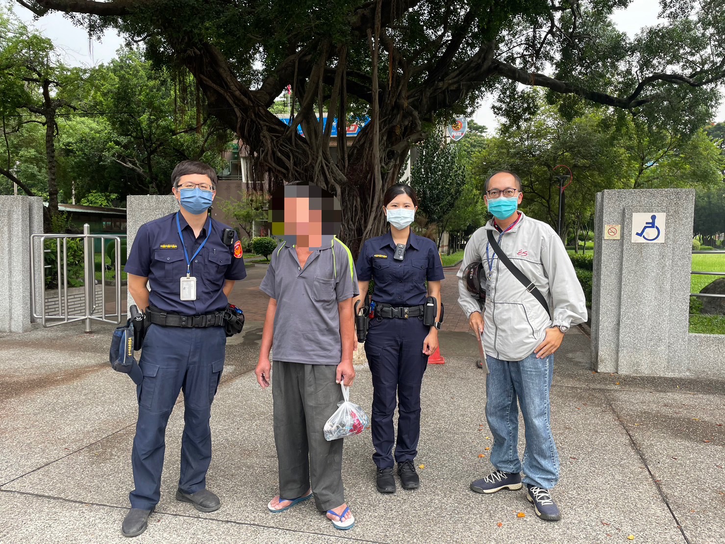 中市警二分局公園派出所員警耐心聽鄭男大吐苦水,好說歹說才將鄭男帶離湖邊,所長吳政和接獲員警回報,得知鄭男艱困處境,遂積極聯繫社福單位有無相關資源可供協助,社會局社工也趕到現場關懷訪視,最後臺中市旌旗教會及社會局東區家庭福利中心等機構分別提供鄭男醫療、工作及安置住所等協助,各方合作對鄭男施以援手,讓鄭男深感人間自有溫情在,承諾將珍重生命,勇敢面對人生。