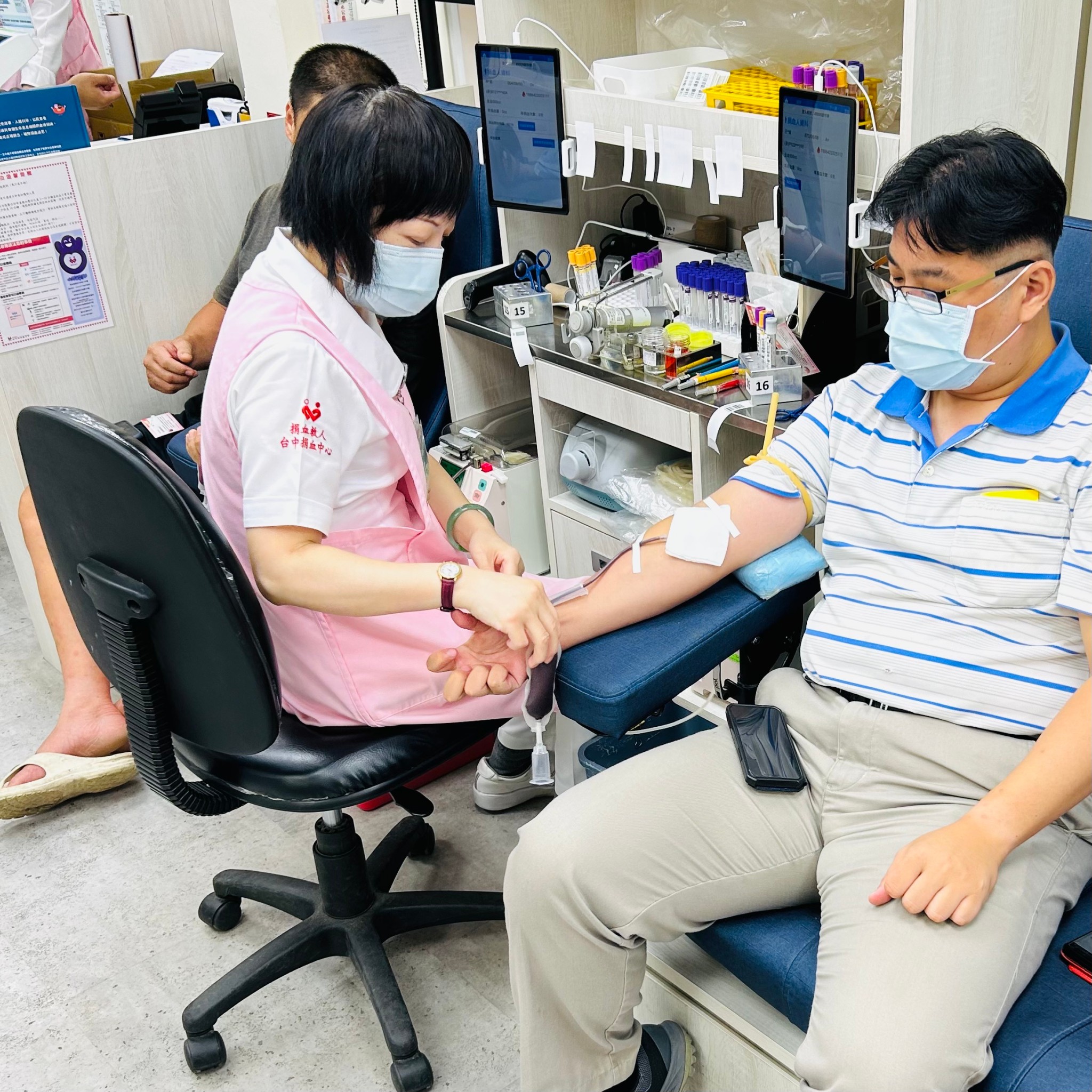 警方今日指出,當日兼任北區義警中隊長的市議員陳政顯以實際行動支持公益,率領義警弟兄全力響應,秉持「捐血一袋、救人一命」的大愛精神,充分展現義警無私奉獻及關懷社會的熱忱。本次捐血活動除了熱血善心的義警夥伴踴躍參與外,許多警察同仁得知消息特地請假前來響應,有的則利用勤餘時間,為了趕上班還偷偷跟認識的義警弟兄換號碼牌,捐血、執勤兩不誤。中市警二分局也把握活動機會,在現場向民眾宣導最新詐騙手法,提醒民眾謹記「一聽、二掛、三查證」的反詐三步驟,讓快樂捐血人也成為聰明識詐人。
