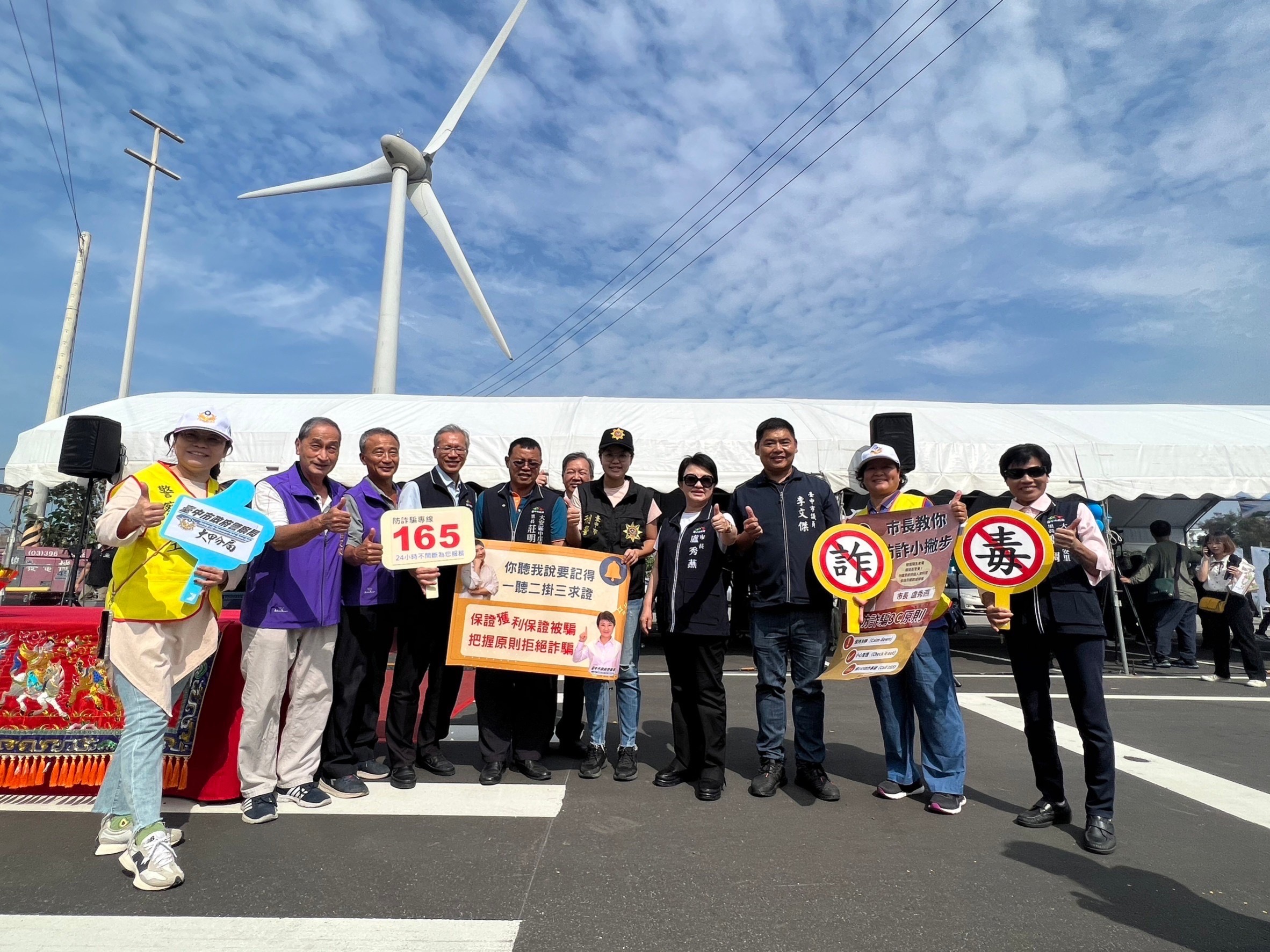 為提升民眾「識詐」知能,臺中市政府警察局於今(18)日08至10時結合臺中市新建工程處「大安濱海樂園北汕溪海翁橋改建完工祈福典禮」 辦理犯罪預防宣導,臺中市市長盧秀燕、市議員李文傑,中庄里里長莊明堯、永安里里長謝綢出席現場致詞並攜手現場民眾共同響應識詐氛圍,有鑑於近期假投資詐騙案類高發,臺中市政府警察局也特別分析常用詐騙手法及誘騙話術,向現場民眾提醒,需慎選投資管道,只要投資管道標榜「高獲利」或「專業老師幫你代操」等關鍵字就是詐騙,請民眾務必小心求證,以守護自身財產。