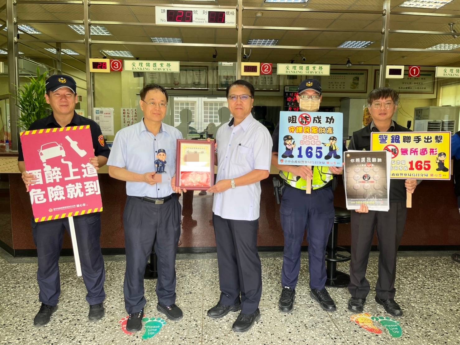 臺中市政府警察局烏日分局長尤啓南在烏日警分局112年9月份,接到多家金融機構的通報,成功協同阻止了高達615萬餘元的詐騙案。為了表揚金融機構行員和警察的卓越合作,尤啓南於昨(24)日特地前往龍津郵局、龍井郵局、烏日區農會溪壩辦事處及烏日區農會九德辦事處等地,頒發阻詐有功獎狀、警察公仔獎盃和禮券等獎勵,以示感謝。