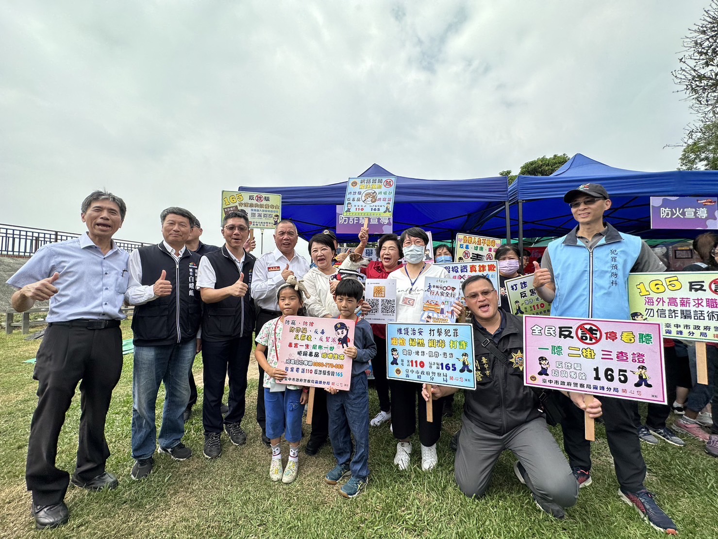 為讓民眾深入認識毒品犯罪及常見詐騙手法,臺中市政府警察局結合消防局今(28)日上午9時至12時辦理「搜救犬退役畢業典禮暨小小領犬員體驗活動」,於光復新村辦理犯罪預防宣導,臺中市長盧秀燕出席現場致詞共同響應「識詐」氛圍,現場超過上百位民眾參與,透過與民眾及小小孩趣味互動及腦力激盪,達到犯罪預防宣導目的,擴大宣導觸及層面與影響力,藉以降低犯罪率,提升民眾反毒、識詐等觀念。