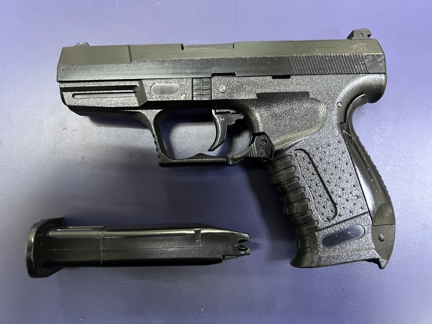 警方今日指出,據了解洪姓學生不滿學校不讓其參加畢業旅行,故意於放學時段在校門前鬧事;警方雖未接獲報案,發現網傳影片立即主動追查,2小時內將6名少年全數帶回釐清案情,查扣空氣槍2支(無殺傷力)及手電筒1支,依違反社會秩序維護法及少年事件處理法移請偵辦。