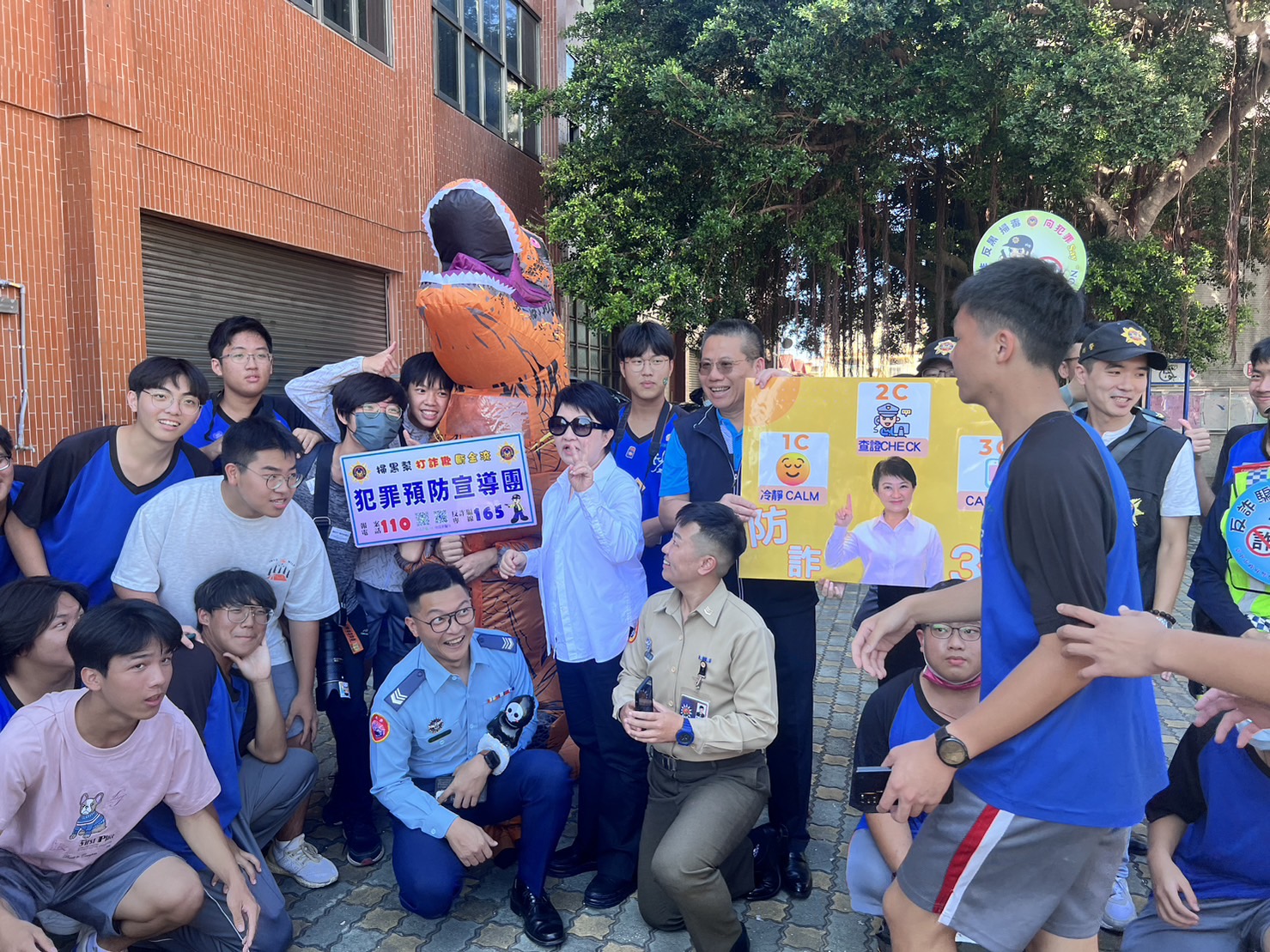 臺中市政府警察局於日前結合「沙鹿高工創校70週年校慶暨傑出校友表揚大會」活動,向參與活動的師生進行防詐騙宣導,加深反詐騙意識,台中市長盧秀燕蒞臨典禮會場時,亦與警察局一同向市民進行防詐騙宣導,提醒市民朋友6大常見詐騙手法特徵,以免落入詐騙圈套。