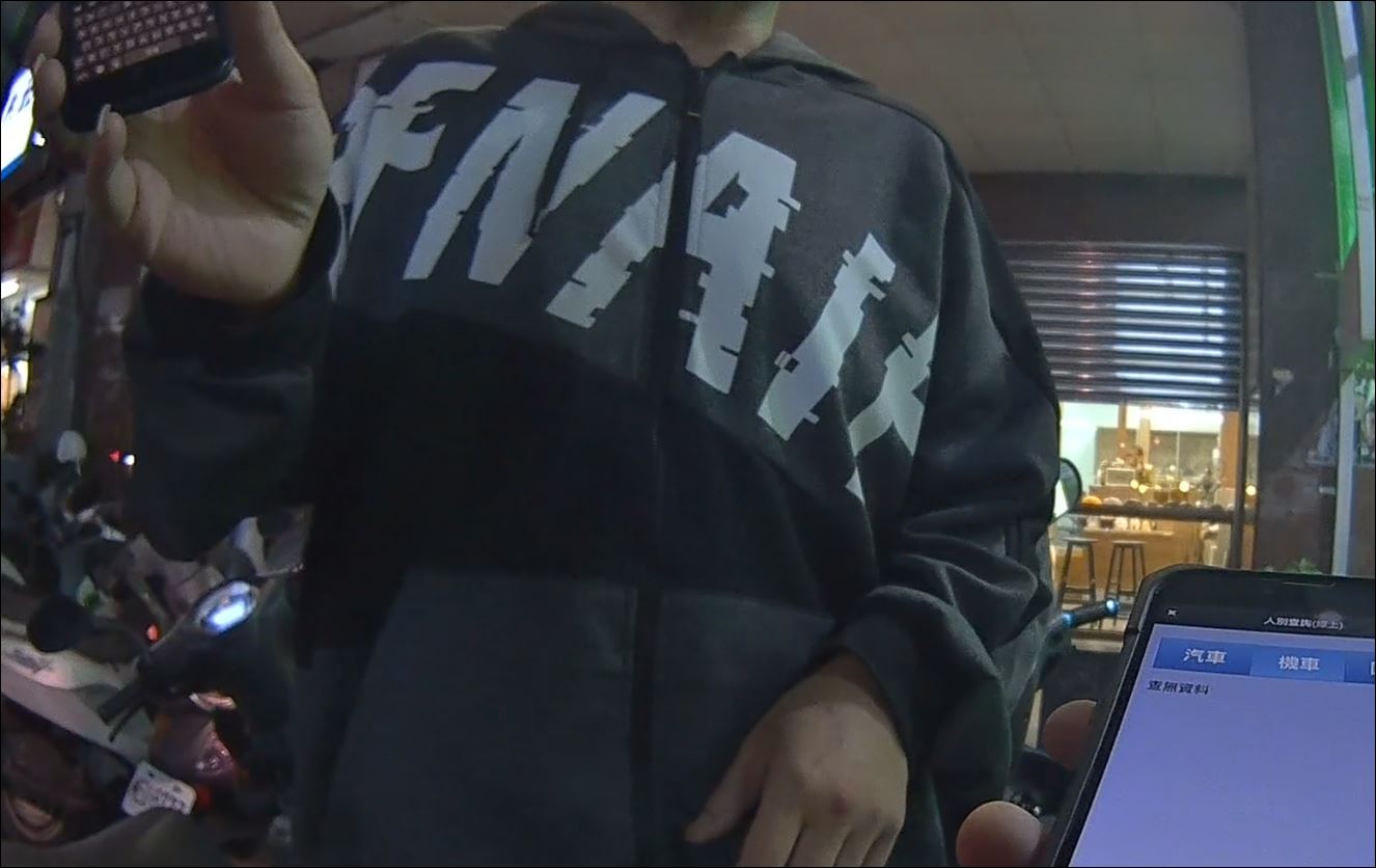 犯嫌出示手機表示自己查證車主。(圖/記者謝榮浤翻攝)
