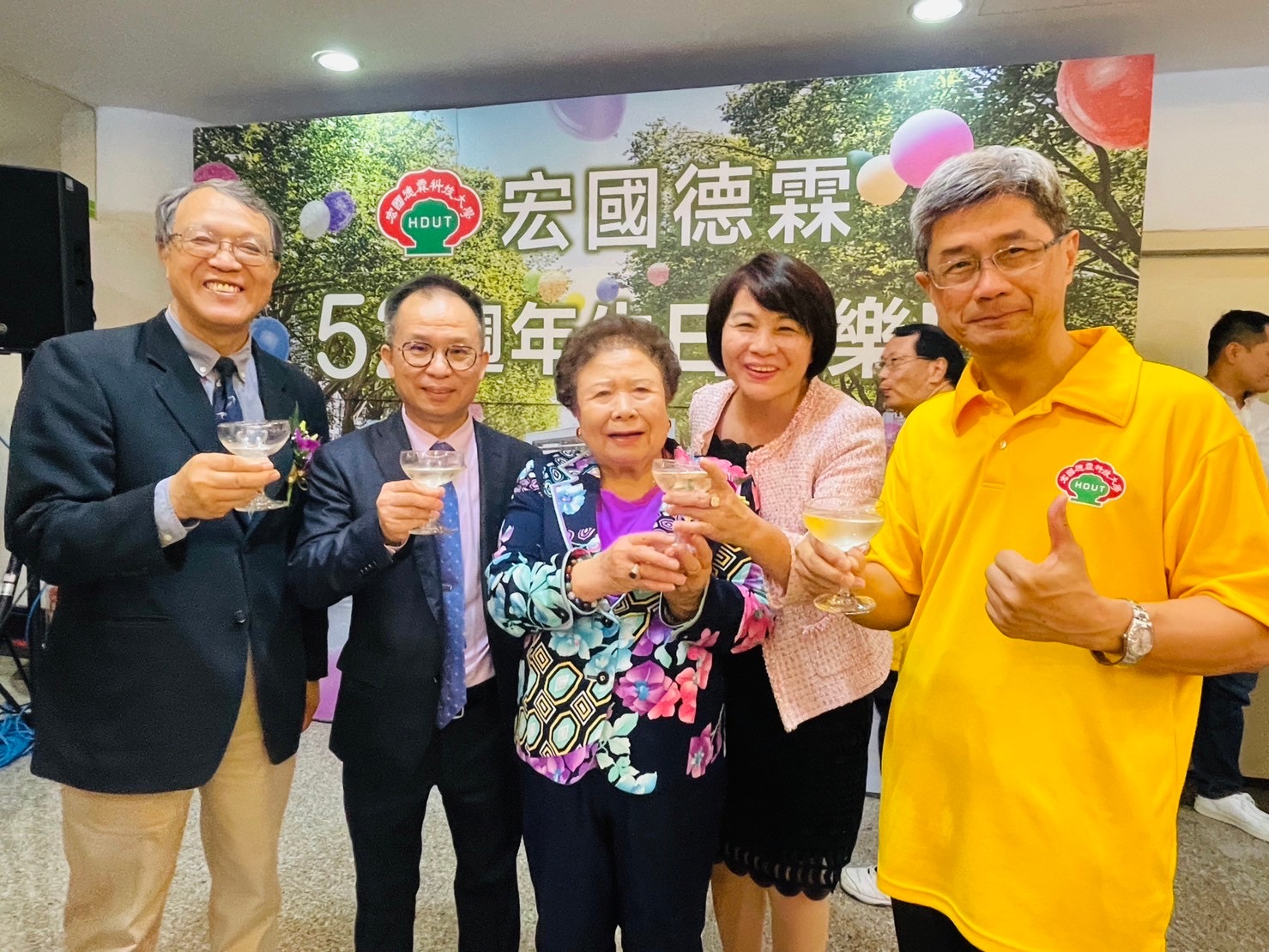 土城區周晉平區長表示,宏國德霖是一所有愛心、有社會責任的大學,學校英語系協助土城社區雙語教學、休閒系協助桐花季導覽解説、餐旅系及廚藝系為在地獨居老人送餐,充份落實品德教育辦學。校該羅清水校長則勉勵全體教職員保持優勢、精進弱勢、掌握機會、挑戰威脅,以林謝董事長奉獻教育45年為榜樣,堅持理想,一步一腳印,再造宏國德霖科大新契機。