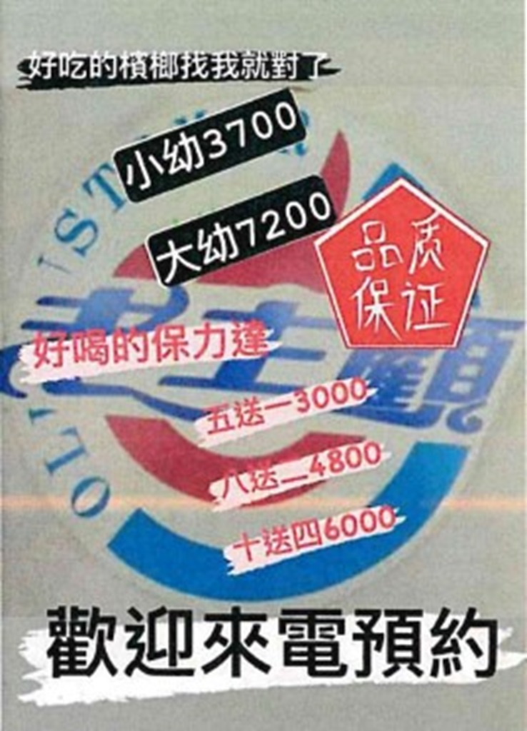 警方今日指出,該販毒集團組織為躲避警方查緝,強調只賣「老主顧」=「熟客」,且以檳榔代稱愷他命,保力達代稱毒品咖啡包,藉此躲避警方追查,該販毒集團由黃姓主嫌負責指揮,邱姓犯嫌擔任販毒小蜜蜂,楊姓犯嫌則負責擔任毒品倉管,再以網路為管道販毒給客人,強調只販賣給認識的熟客,該販毒集團透過販賣每包愷他命可賺500元、毒咖啡包每包可賺100元,藉以販售牟利。