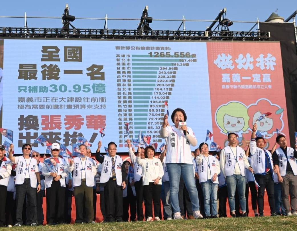 張秀華表示,現任立委王美惠,過去在立法院支持萊豬、阻擋疫苗採購,足以證明她以黨意為優先、違背民意,根本沒有把人民的健康與食品安全擺在前面。另外,審計部所公布前瞻計畫預算,在5,385億已執行預算中,嘉義市僅獲30.95億,是全台22縣市最後一名,王美惠不會爭取預算,「換張秀華來做」。