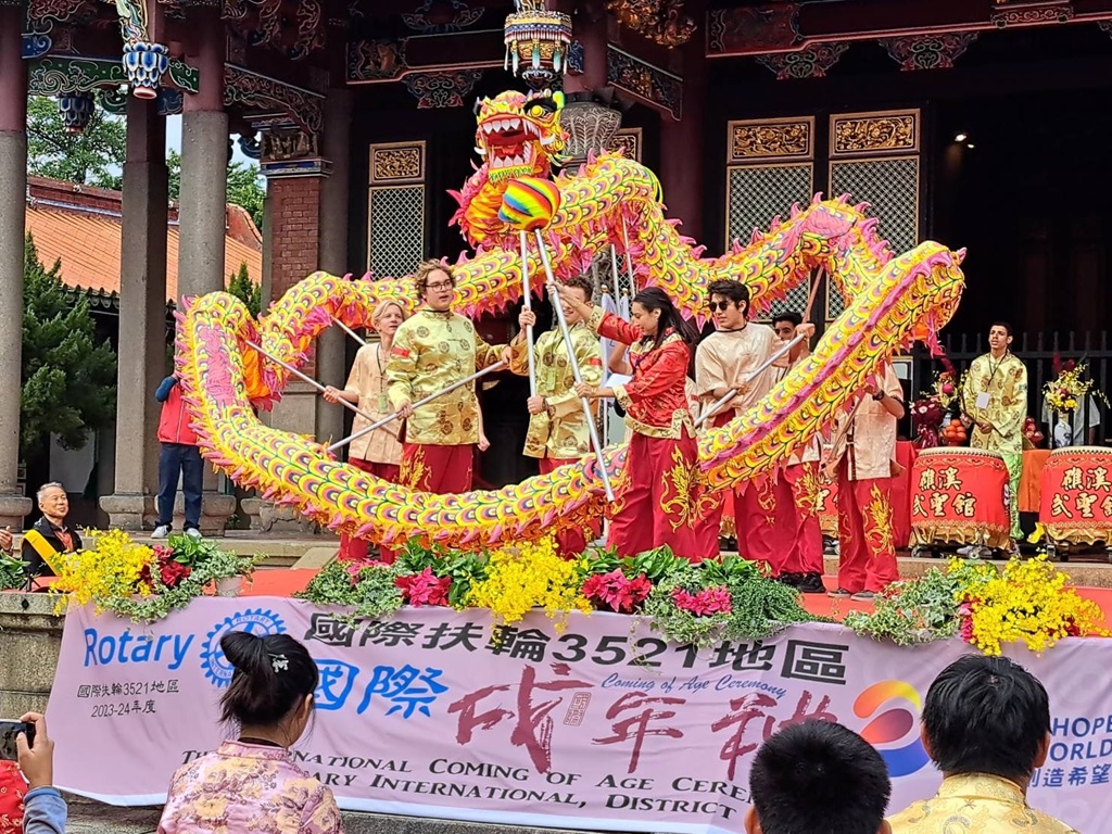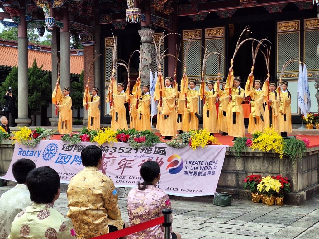 際扶輪3521地區台北市仰德扶輪社於昨(25)日下午1:30於臺北市孔廟為來自13個國家共44位交換生,盛大舉辦「冠笄之禮」體驗中華文化古禮與草根文化,現場莊嚴隆重。