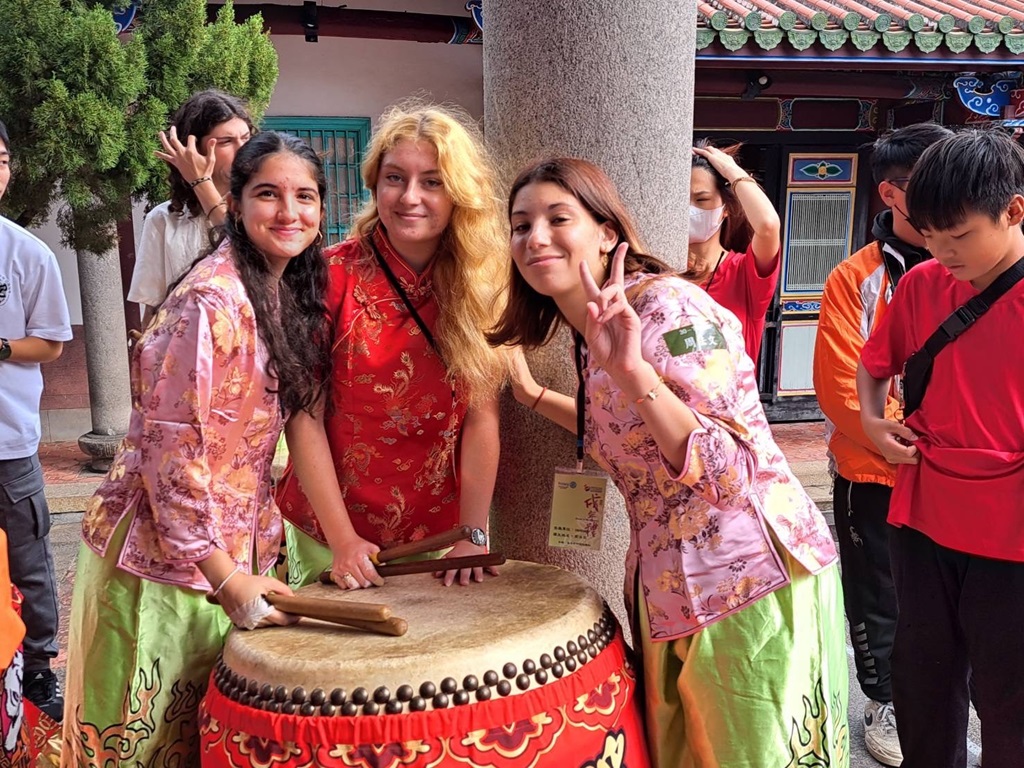 昨日現場也特別安排了外國學生親身體驗舞龍舞獅、鼓陣及電音三太子,由台灣廟會結合中國武術和藝術的民俗表演,讓各國交換學生親身體驗其中的驚奇、歡樂及文化獻禮。