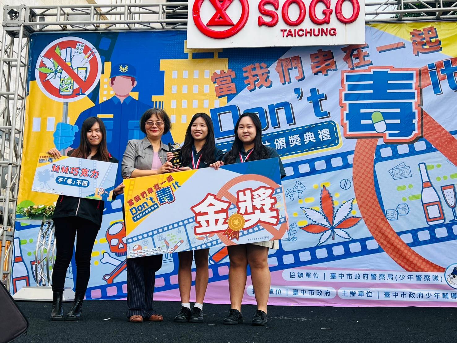 警方今日指出,這次徵選活動從六月底開跑,經主辦方及毒品防治專家擔任評審進行複選會議,並選出前五名進入網路投票。經過一番激烈競爭後,最終選出金獎、銀獎、銅獎各一名、兩名佳作及五名入圍獎,並於11月25日下午2點在台中市廣三SOGO百貨公司一樓廣場當場揭曉得獎名次及頒發獎項。每組參賽者都是優秀的創作者,每部作品都展現了青年學子們的創意和才華,也傳達了毒品所造成不同面向的危害。頒獎典禮邀請由臺中市政府警察局少年警察隊副隊長陳素棉以及負責創辦建置「少年英雄聯盟」的少年隊預防組長簡佳俊擔任頒獎人。現場頒獎活動的氣氛非常熱烈,在宣布金獎得主由臺中市華盛頓高級中學同學們所創作的《不『毒』不回》影片獲獎後達到最高潮。會後參賽同學及家長們也紛紛邀請一起拍照攝影留念,在現場參與的民眾也充分感受到主辦單位舉辦本次活動的意義。