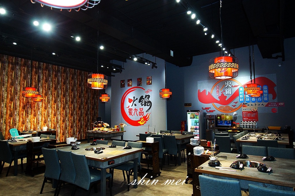 蜀九品為了配合台灣人的口味與需求,還特製九宮格的鍋具,所使用的牛隻脂肪製成的牛油,都是富有四川特色—辣而不嗆、偏重麻香同時醇香十足的火鍋湯底,特地分設有微、輕及濃成都口味,牛油的份量由少至多分配,客人可以根據自己的口味作出不同選擇,享用最適合自己口味的湯底,整體吃起來相當刺激過癮,而且越煮越香辣、味道越濃郁。