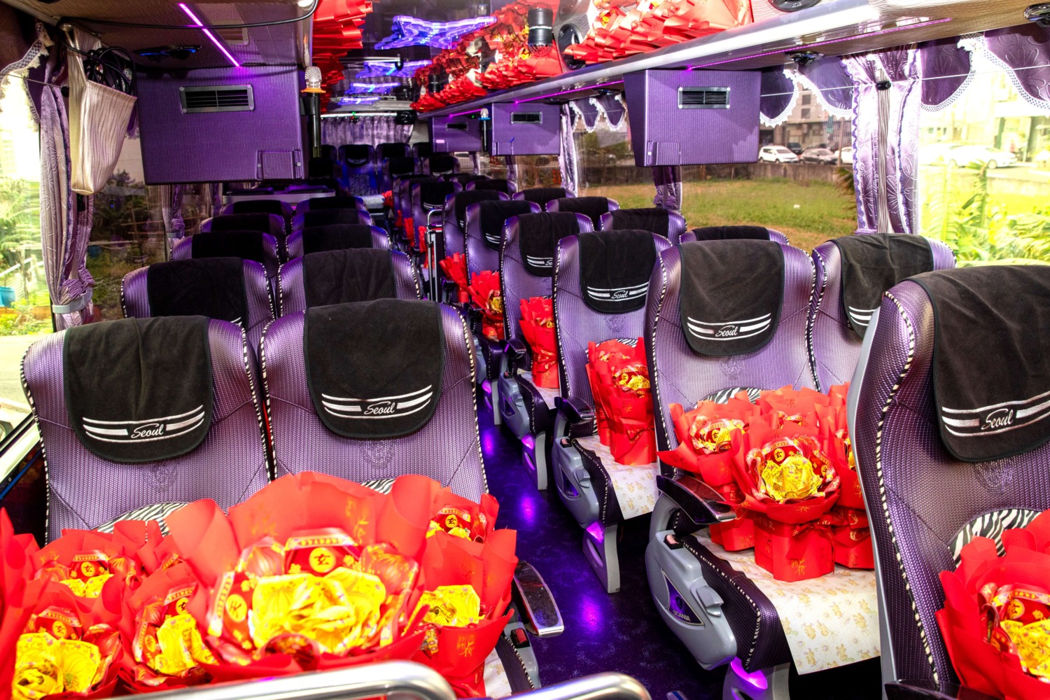 中部知名代購直播主「一樓香水闆爸」吳秉承日前向天喜活動行銷訂購200束造型精美壯觀的好神花,於今(5)日出貨,天喜活動行銷公司負責人魏卿羽中午時分於苗栗出發,親自以遊覽車將好神花運送至台中太平。