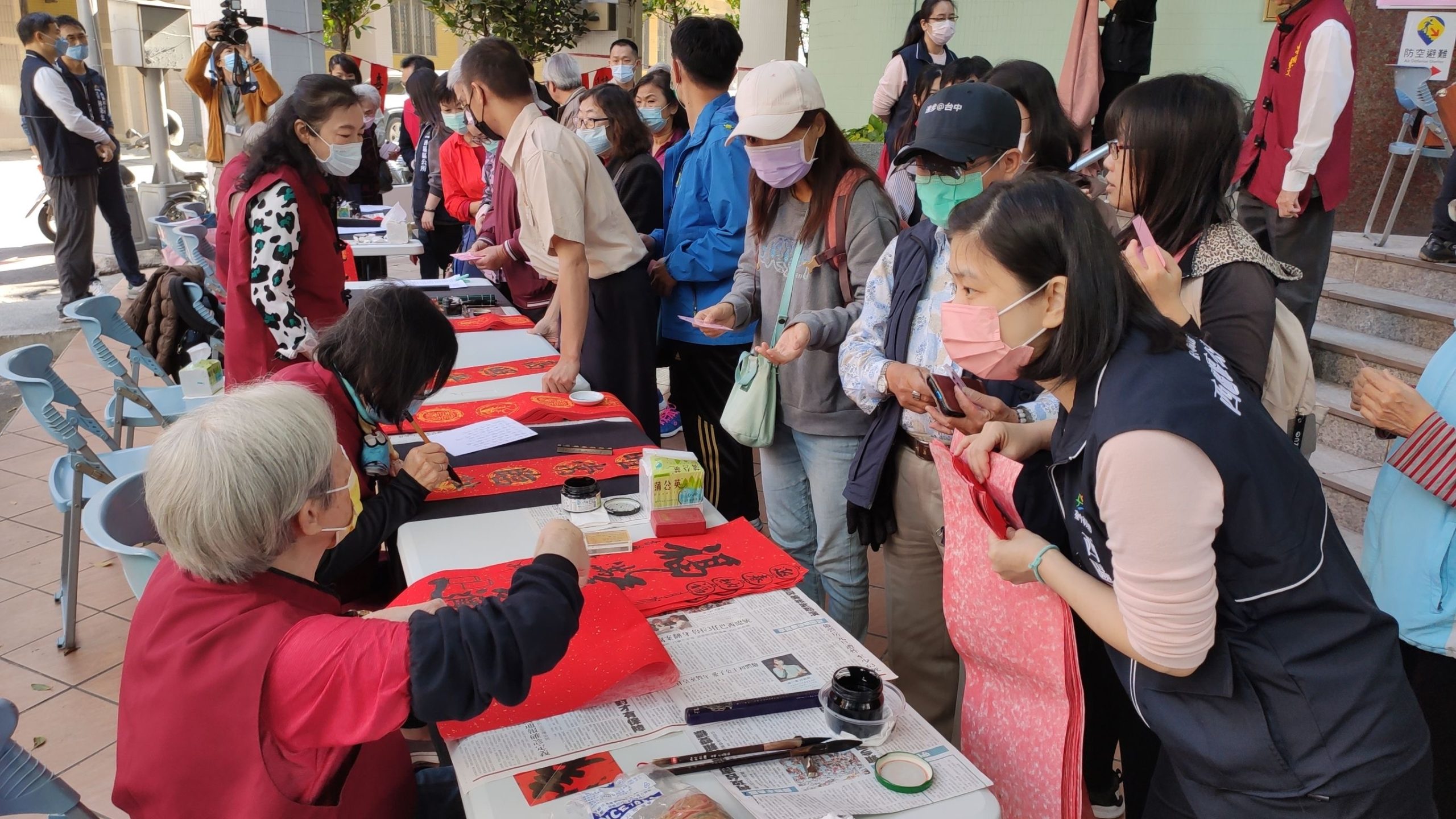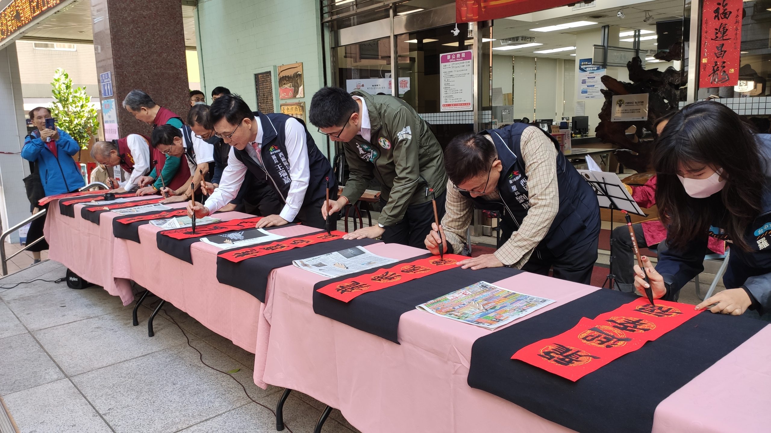 徐松森老師率領的書法團隊在現場優雅揮毫,為民眾奉上吉祥的春聯,象徵著福祿好運的美好祝願。區長王瑞嘉親自出席迎接民眾,邀請大家共同參與這場歡慶迎春的盛典,共享節慶喜悅。