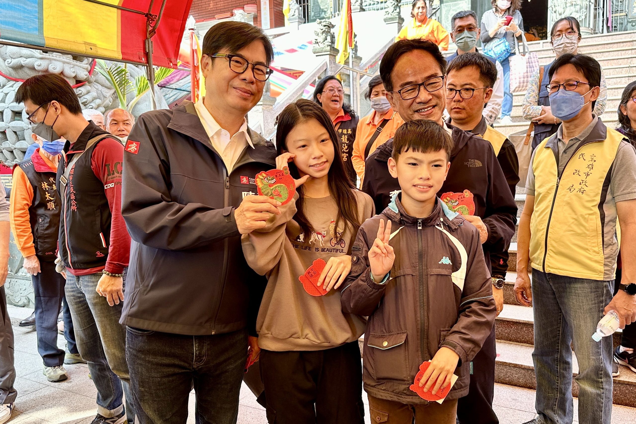 #陳其邁、龍年小紅包、三民明聖宮、鳳山開漳聖王廟、警政時報、接連三民、鳳山走春祈福發紅包 陳其邁祝賀新年快樂、龍年行大運