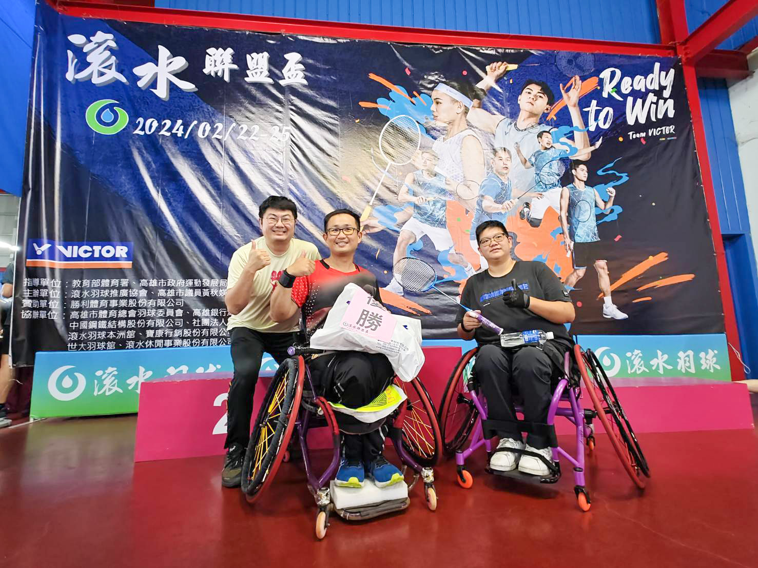 參與輪椅聯盟組的方小姐表示,滾水羽球賽事我們已經參加很多次,從開始興建場館時,就開始密切關注與期待。後來得知這裡是全台灣擁有最多場地的羽毛球場場館,侯老闆對待我們非常友善,甚至貼心地安排了斜坡板,並且專門在週末時段保留了最後一個18號場地,除非場地管理有特殊需求,否則絕不開放此場地,讓身障者專用,這個在角落L型的場地方便我們進出,也提供了放置私人物品的地方,讓輪椅的羽球愛好者感受到溫暖及友善態度,另場地旁邊的停車場方便性更是加分,我們常遇到其他場館擔心輪椅會損壞地面,但輪椅底部就像鞋子一樣,是由膠質製成,並不會對地面造成摩擦,期望其他羽毛球場也能提供更友善的環境,讓更多身障者能夠享受到運動的樂趣。