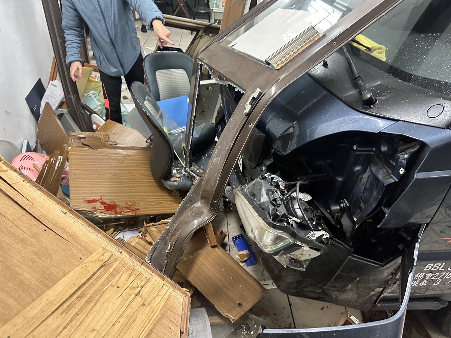 小貨車衝入基隆市警察局第三分局八堵分駐所。(記者薛秀蓮翻攝)