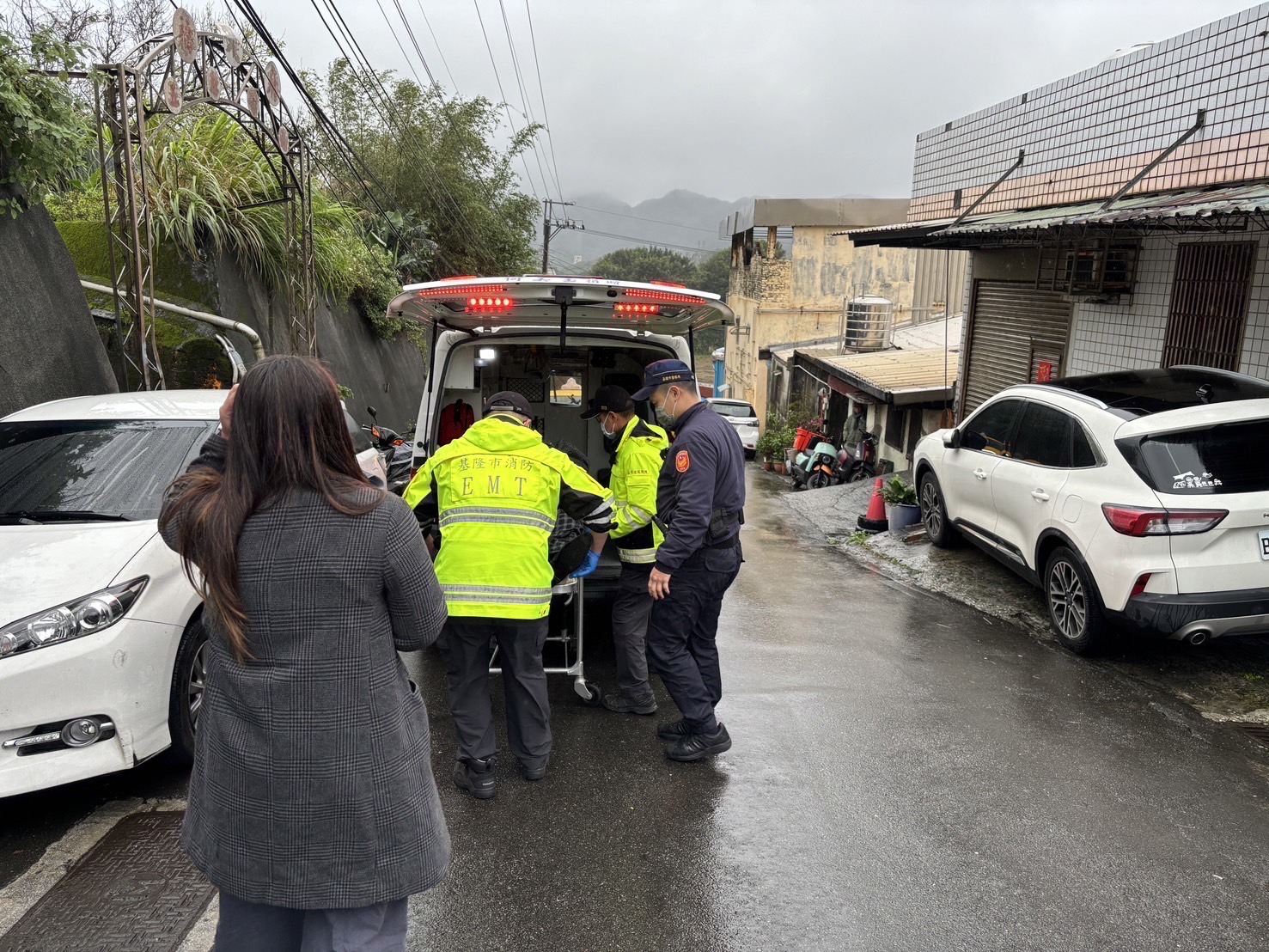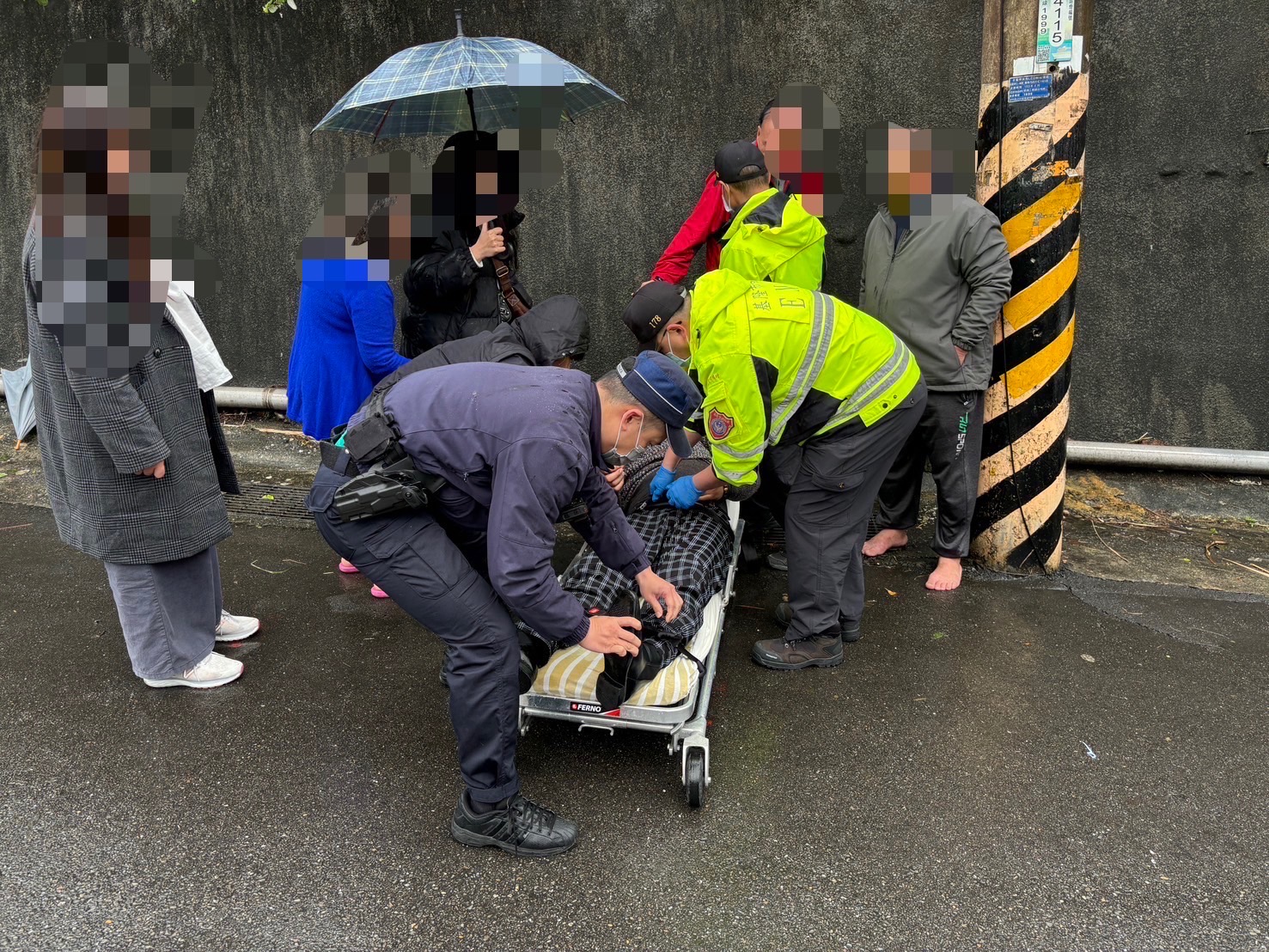 男子倒路中喚不醒,基警協同家人協助送醫。(記者薛秀蓮翻攝)
