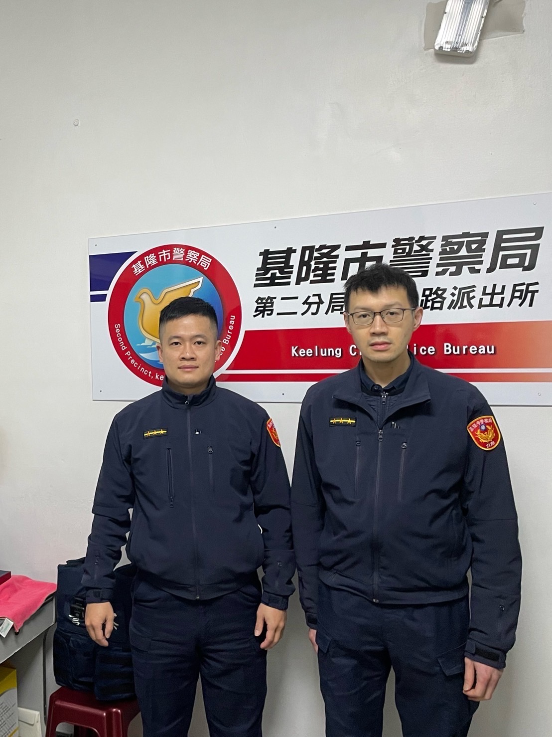 基隆市警察局第二分局和一路派出所警員鄭旭翔、林星辰(左至右)。(記者薛秀蓮翻攝)