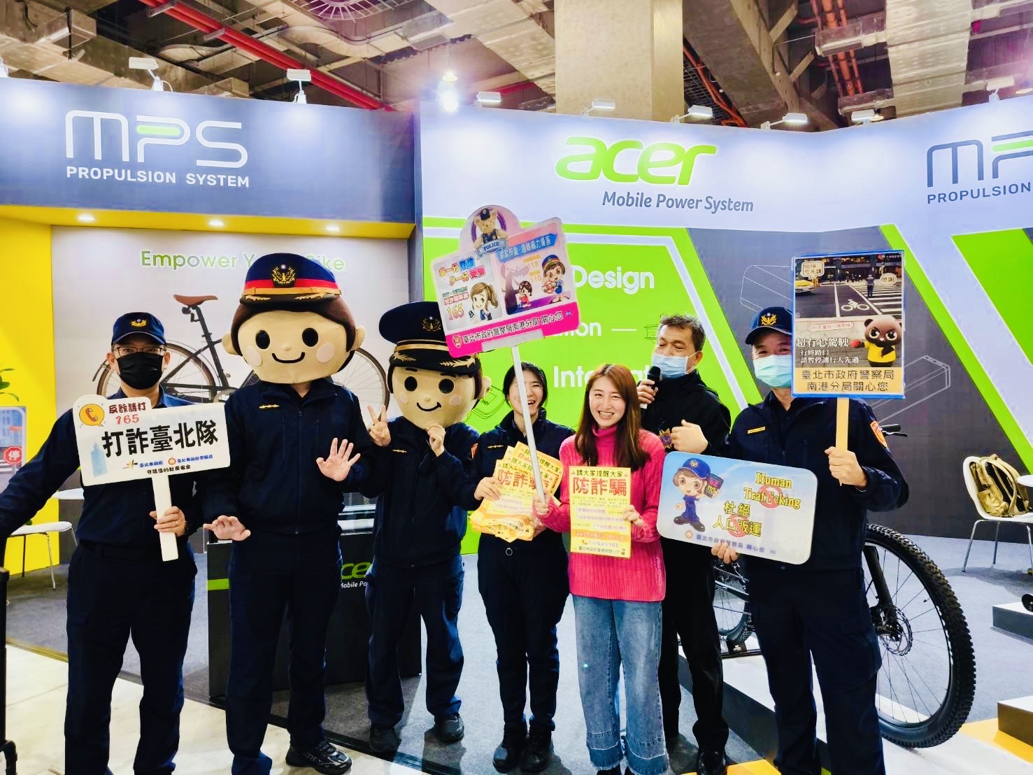 臺北市南港分局本著「預防為先、偵防並重」理念,特與中華民國對外貿易發展協會合作,利用「台灣國際運動及健身展、台北國際自行車展」期間,加強全民「識詐、婦幼、交通安全」等預防犯罪宣導活動。