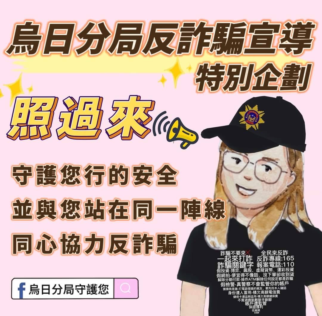 烏日警分局長尤啓南呼籲民眾:「在遶境途中可能會遇到假冒警察詐騙、冒充家人借錢或假綁架勒索等情況。請記得,所有這些都是詐騙手法!如果接到可疑電話,請撥打165反詐專線查證,或直接向附近的警察諮詢,保障自身安全!」