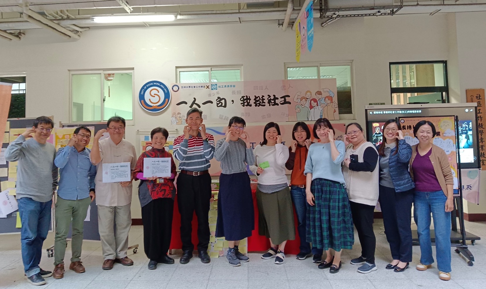 亞洲大學社工系,選在今年世界社工日,製作「前面有光、心中有路、風雨雁行」影片,並發起「一人一句,我挺社工」活動,號召全校師生響應認識社工、理解社工。不少人寫下,「在第一線工作的社工辛苦了,感謝你們對台灣社會的努力付出,加油加油!」「社會上有很多人的生活、心理,需要你們來照顧,謝謝你們!」為從事社會工作的校友加油打氣。