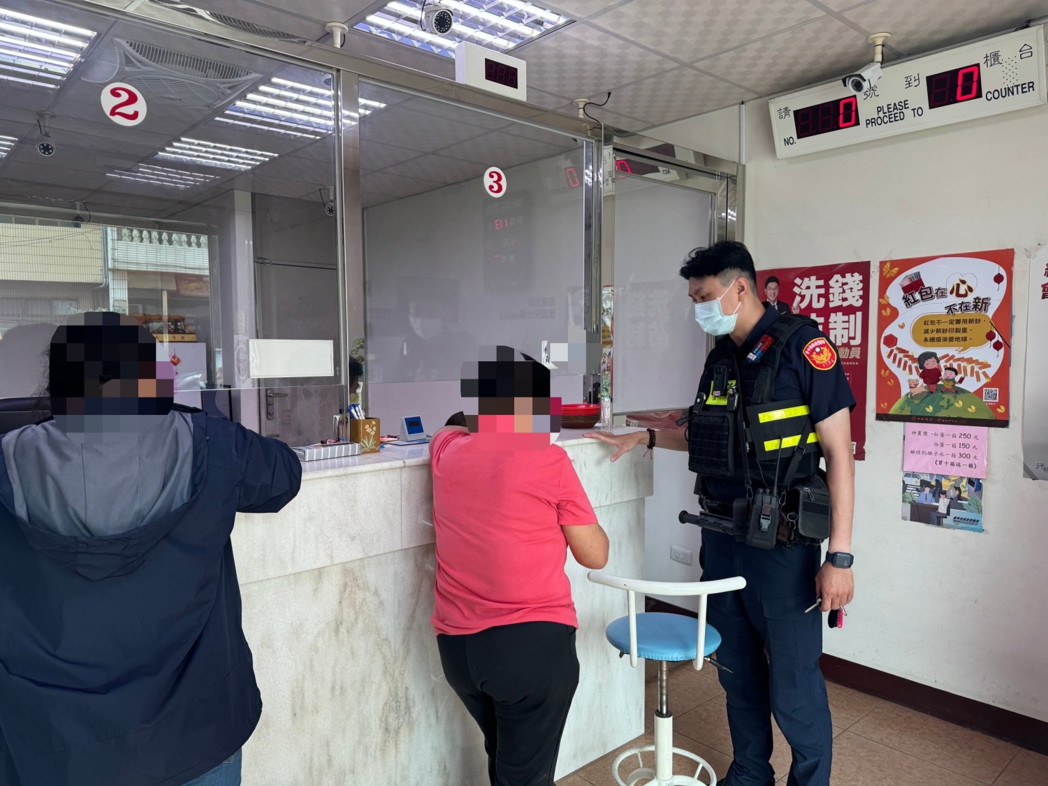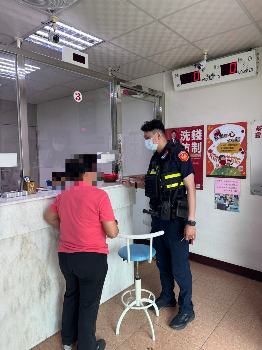 豐原警分局豐洲派出所警員洪睿謙、洪如玉日前中午12時許接獲轄內農會通報,68歲李姓婦人疑似透過遠房親戚介紹,欲臨櫃匯款80萬元投資「高獲利」互助會,行員關懷得知後,擔心其遇詐故而報警。李婦一再向員警保證,與對方是遠房親戚,該筆金額係「會錢」,並非遭詐,惟警方請李婦用LINE致電聯繫對方,員警與其通話詢問身分時,其直接脫口而出係客服人員,李婦欲匯款之帳戶絕無問題等語,警方再進一步詢問其與李婦關係時,對方支吾其詞,亦不願意提供個人資料後,逕自掛斷電話。員警向李婦說明這是目前常見的「假投資」詐騙手法,極力勸阻李婦高額投資前務必慎思,千萬不可輕信,落得血本無歸的下場,這才打消李婦匯款念頭,及時阻詐。