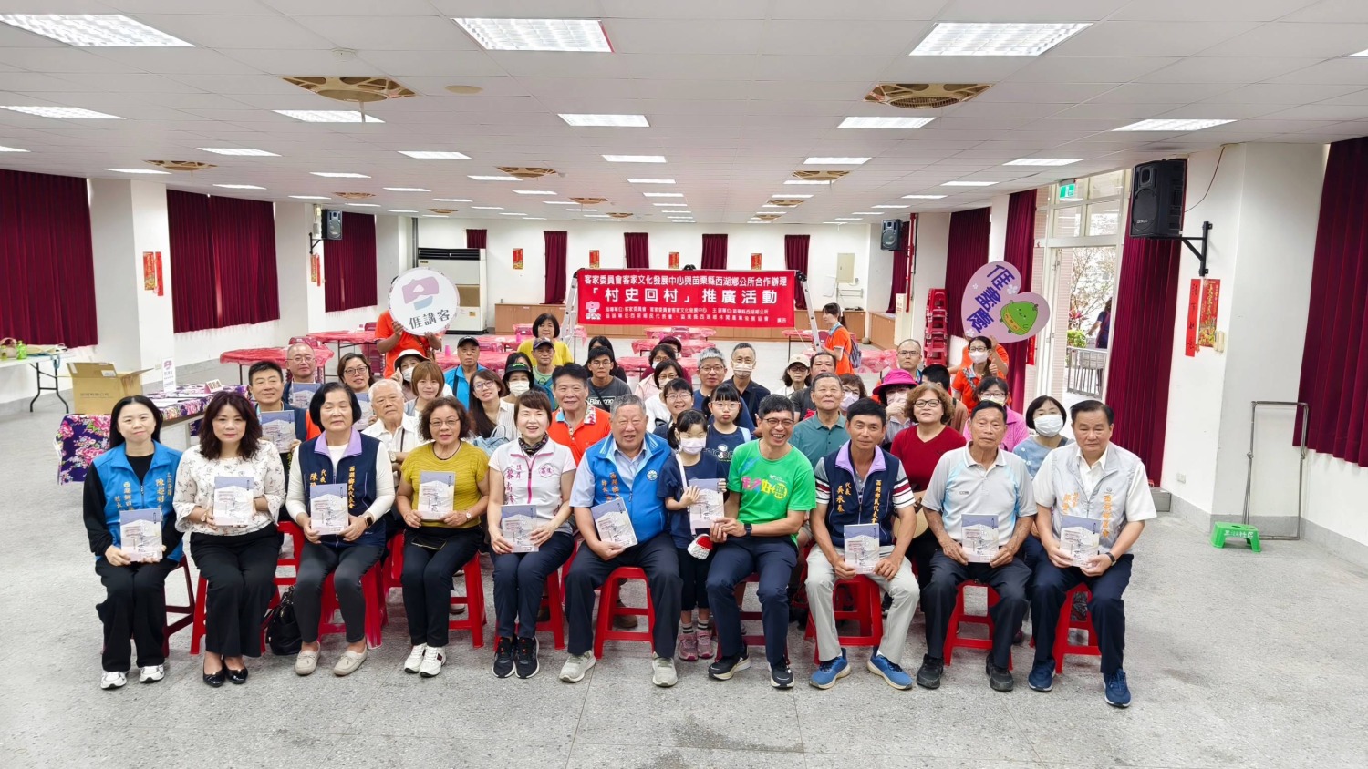 家委員會客家文化發展中心與苗栗縣西湖鄉公所昨日假苗栗縣西湖鄉遊客服務中心合作辦理「村史回村」走讀活動,希望透過本次活動,讓在地居民更加了解家鄉的客庄故事,彷彿走入客庄村史書籍內所描繪的歷史場景,共同建構屬於我們的客庄記憶。