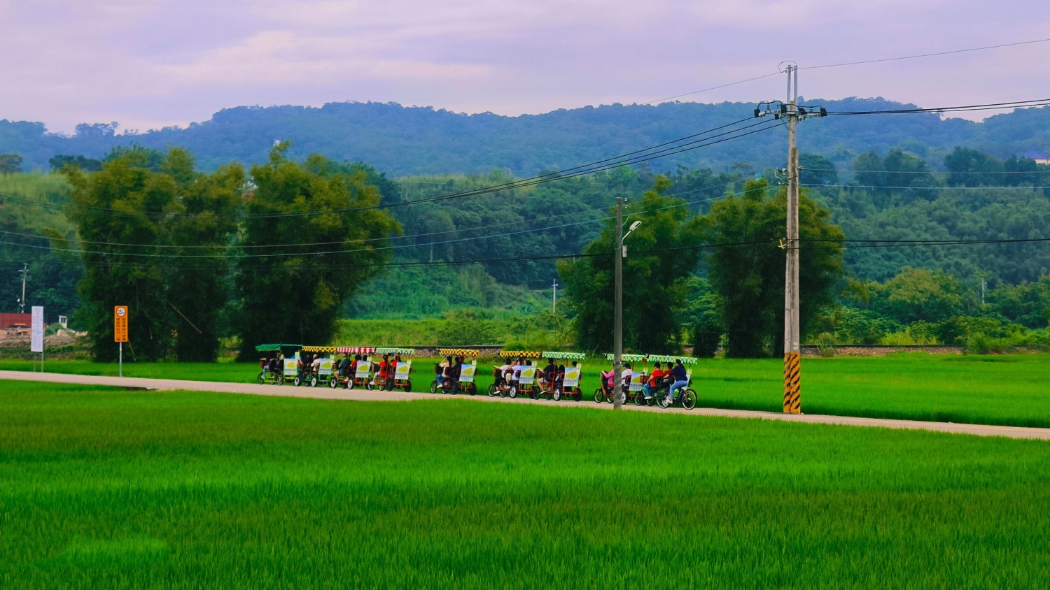 參加走讀活動的民眾乘坐電動遊園車,除了沿途欣賞美麗的田園風光外,還能藉由導覽解說,知道更多西湖的故事,對當地有更深的了解印象。(記者 張艷君拍攝)