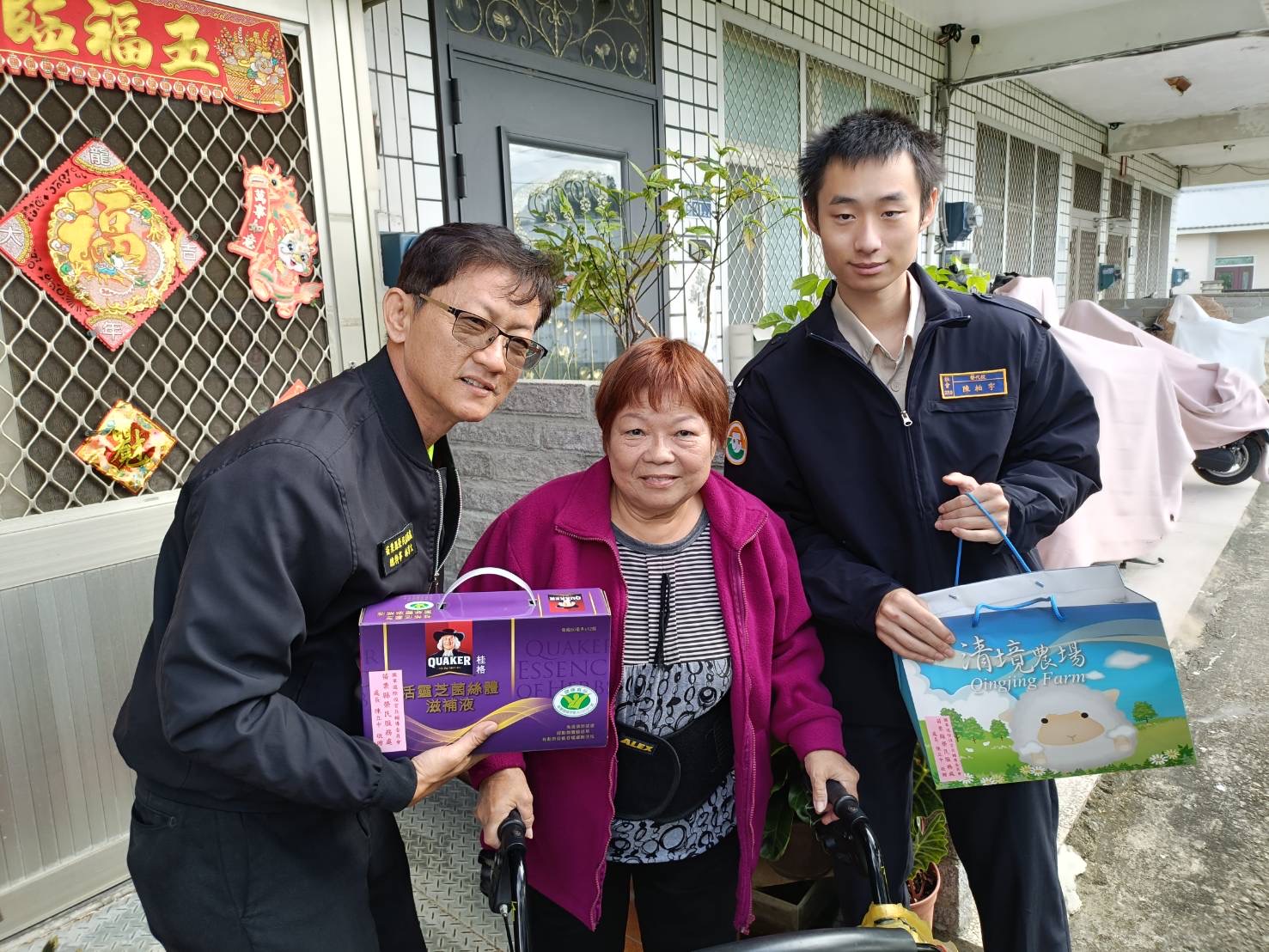 林總幹事等人在初冬之際,攜帶退輔會「寒冬送暖」清境農場溫馨保暖禮盒組及多家企業捐贈「新春祝福」養生禮盒,關懷訪視高齡年邁及弱勢榮民(眷)生活狀況,除殷殷關懷榮民眷身體安康及生活狀況外,更與長輩閒話家常外,並提醒邇入冬以來、日漸寒冷,記得做好禦寒措施,榮民眷對於榮服處之貼心關懷,紛紛表達感謝之意。