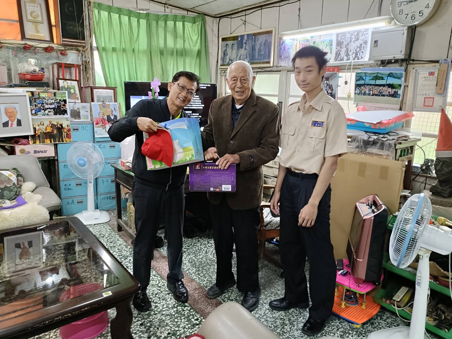 近期氣候變化大,苗栗縣榮服處在歲末年終之際,由總幹事林育文偕同服務同仁、替代役男等,前往苗栗縣公館鄉關懷年長榮民眷陳伯伯等人,致送旅遊勝地清境農場的圍巾、帽子、護手霜、護唇膏、雞精等禦寒物資,讓榮民袍澤們感受到榮民服務處的熱情。