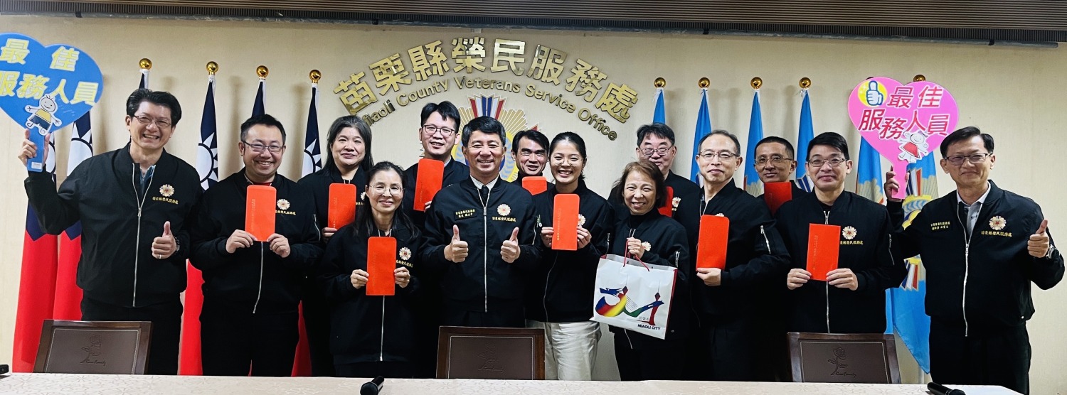 苗栗縣榮民服務處召開年終工作檢討暨服務會報,頒發十二月壽星生日禮金,並對113年度同仁票選最佳服務人員及表現優異職員公開表揚,處長親自頒發工作獎金,嘉勉各項工作勤奮成績優良,鼓勵全體服務同仁學習與效法。會後以披薩及飲料犒勞全體服務團隊,預祝新年快樂、平安健康。