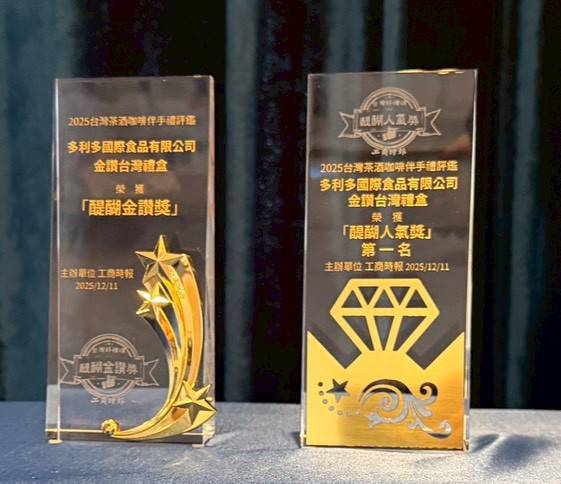 多利多國際食品有限公司以旗下代表性商品『金讚台灣禮盒』,同時榮獲「醍醐金讚獎」與「醍醐人氣獎」,成為本屆評鑑中少數獲得專業評審與市場消費者雙重肯定的品牌之一,充分展現台灣果乾伴手禮在品質實力、品牌理念與市場接受度上的卓越表現。