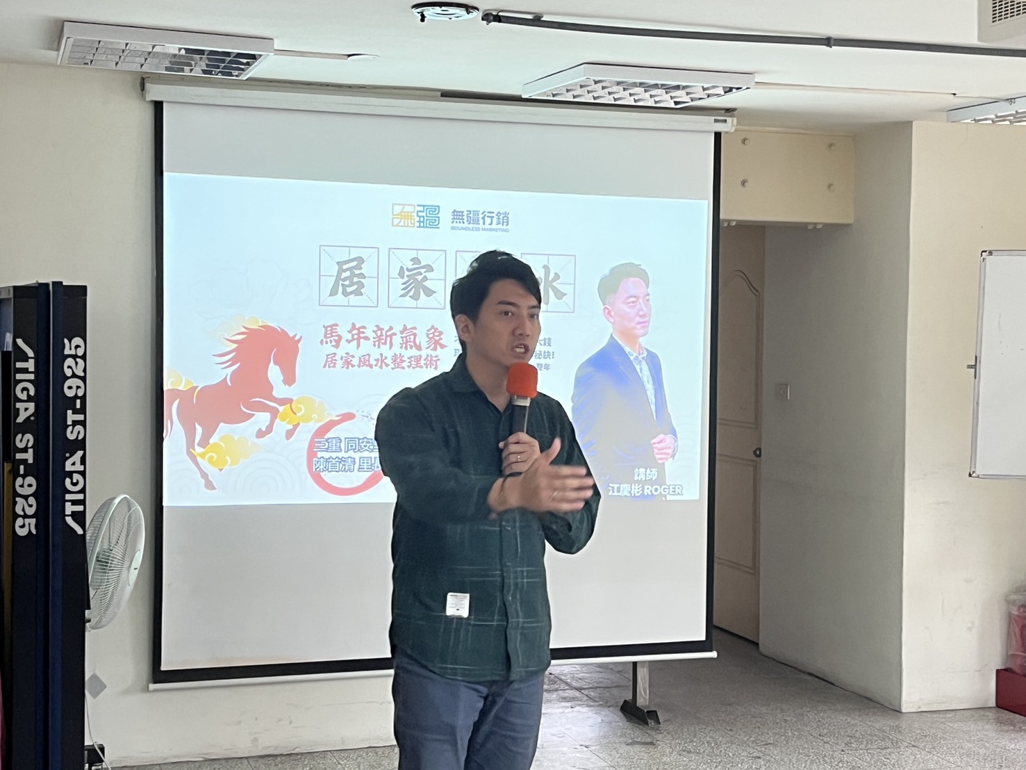 【警政時報 崔兆慧/新北報導】皇順集團旗下無疆行銷公司今(6)日於新北市三重區同安里舉辦「馬年新氣象,居家風水整理術」講座,邀請講師江慶彬與里民分享居家風水與環境整理觀念,希望藉由調整生活環境與風水擺設,為新的一年帶來好運勢。