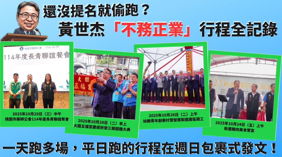 【警政時報 崔兆慧/桃園報導】國民黨立委王鴻薇質疑民進黨桃園市長參選人、前法務部政務次長黃世杰在上班時間跑地方行程,黃世杰今(23)日透過Threads發文回應,強調相關指控「並非事實」,所有非公務行程皆依規定請假,且未動用任何行政資源。