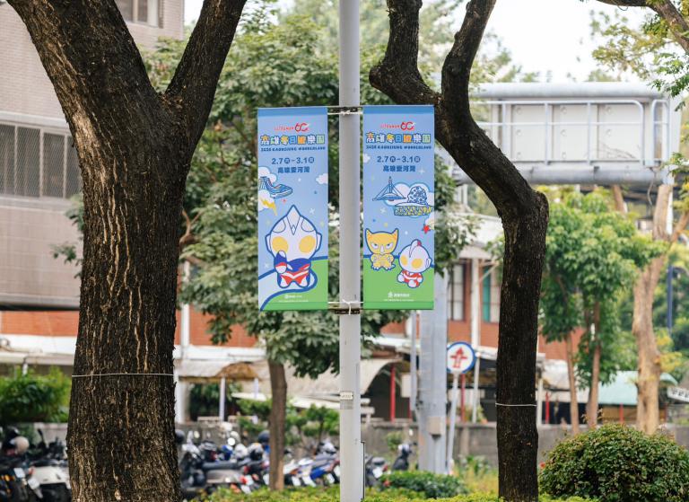 ▲超人力霸王主題路燈旗。(圖/高市府觀光局提供)