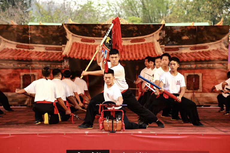 ▲冠軍隊伍「鳳武薪傳—西螺鳳山館」融合武術與戲劇,展現精湛陣頭技藝。(圖/觀光局提供)