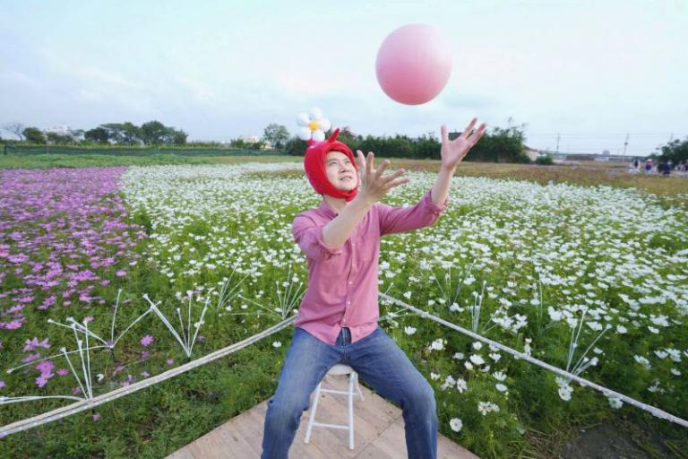 竹北「陌上花開」波斯菊花海首週 鄭朝方化身皮克敏成孩子王