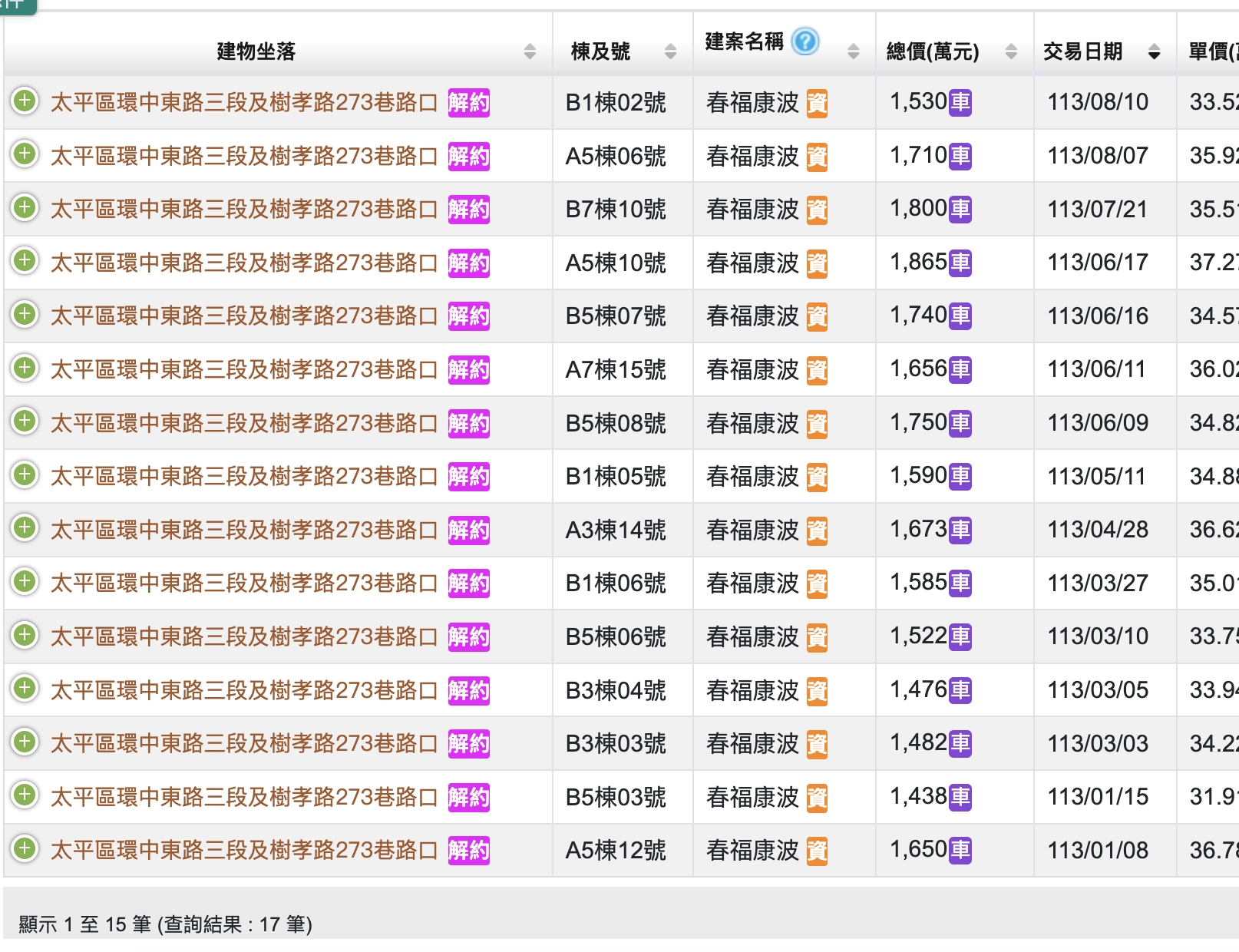 至於過去投資客瘋搶的案子,今年反倒變成「倒貨」熱區。其中如首購蛋白熱區太平新光區段,新成屋「佳福大於」,去年社區行情已經站上4字頭,不過近期一戶中高樓坪數42坪、開價1398萬元,不含車位換算單價不到35萬元,屋主「開價」直接賠售百萬元要出場,而同區域預售案「春福康波」據查更出現解約潮,總戶數172戶已有17戶解約,比例達1成之高,讓過去只能「看得到吃不到」的FOMO首購族,終於有機會重新進場。