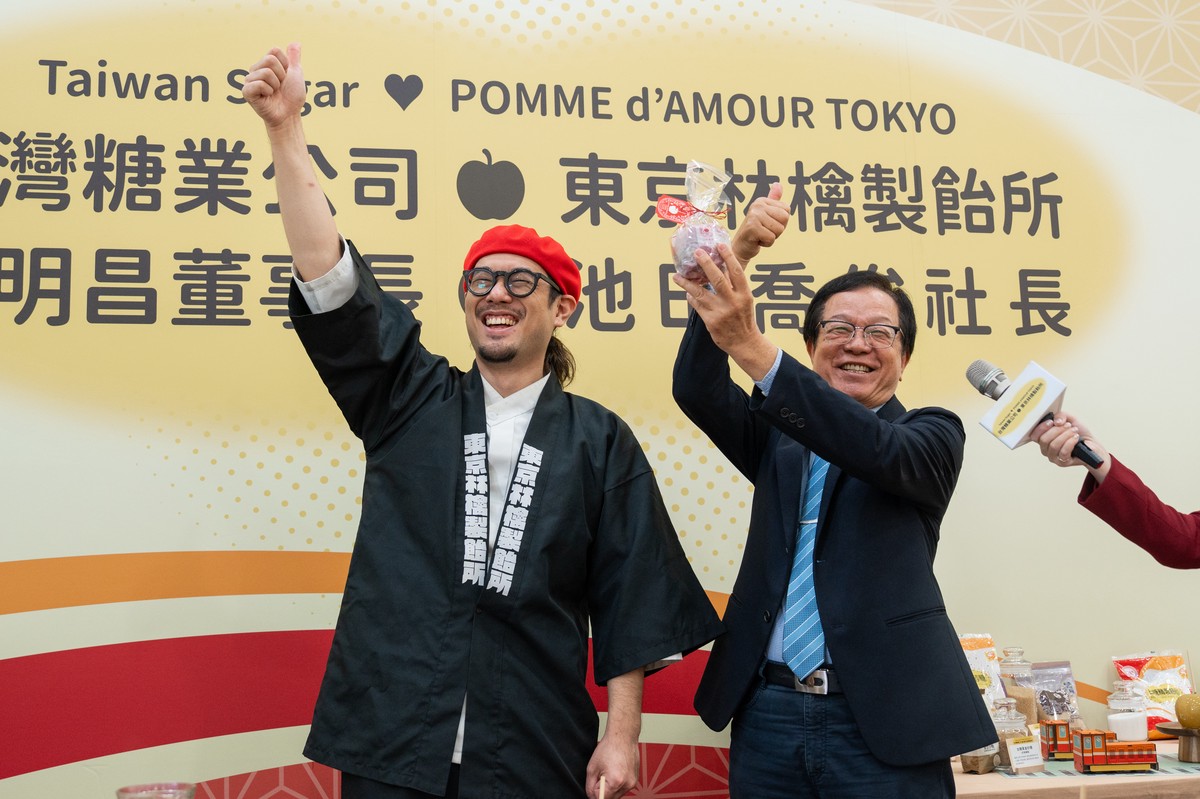 日前因來臺狂掃台糖精緻細砂引起海關查驗而爆紅的東京林檎製飴所社長池田喬俊,9日造訪台糖與董事長吳明昌相談甚歡,並現場製作具有專利的蘋果糖工藝,吳董事長與台糖人員品嚐「台糖 NO.1 蘋果糖」後均讚不絕口,雙方也將更進一步討論未來的合作模式,讓一場意外牽引出甜蜜的交流與日後臺日的商機。