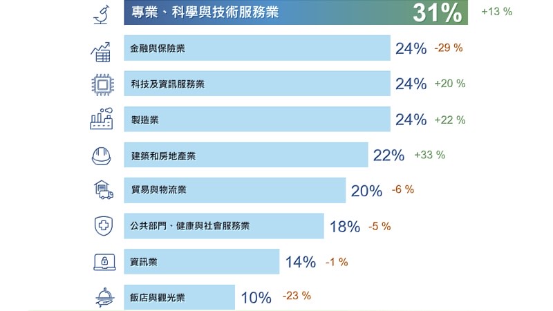 各產業的人力百分比,就業展望及懸殊差距。圖來源/萬寶華官網