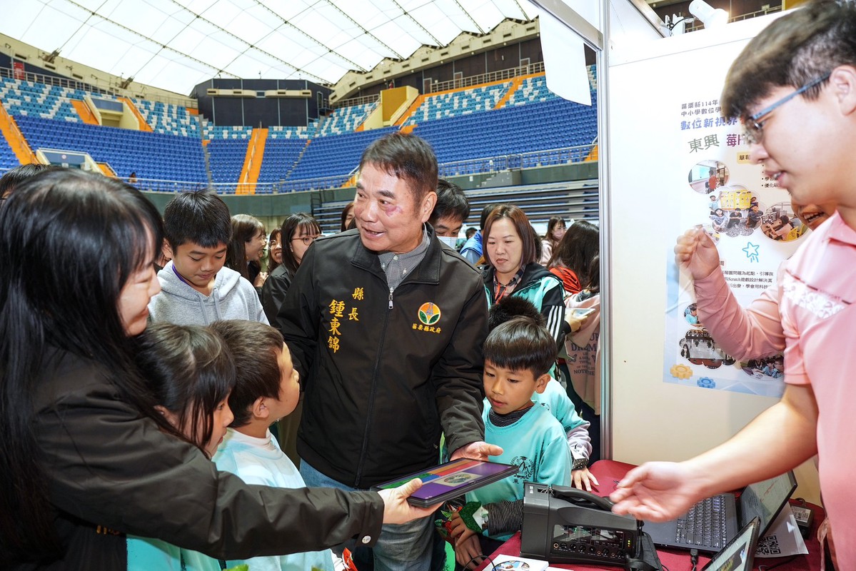 縣長鍾東錦表示,為邁向智慧城市並縮短數位落差,苗栗縣政府致力於強化數位基礎建設與教學資源,逐步構築起全方位的數位學習生態系;從班班有大屏、生生用平板、親師生平台(APP)的推動,到AI創意融入日常教學,讓數位工具成為學生個別化學習與創新教學的重要助力。鍾縣長強調,數位教育應從小扎根,讓孩子在日常學習中自然培養思考、提問與解決問題的能力,在教師的啟發引導下,將知識真正轉化為生活應用的素養。感謝全縣學校與教師長期投入數位教學,讓外界看見苗栗數位學習逐漸成熟的果實,並承諾縣府未來將持續營造更開放、多元且具前瞻性的學習場域,讓科技、AI與創意融合發展,持續書寫苗栗教育的新篇章。