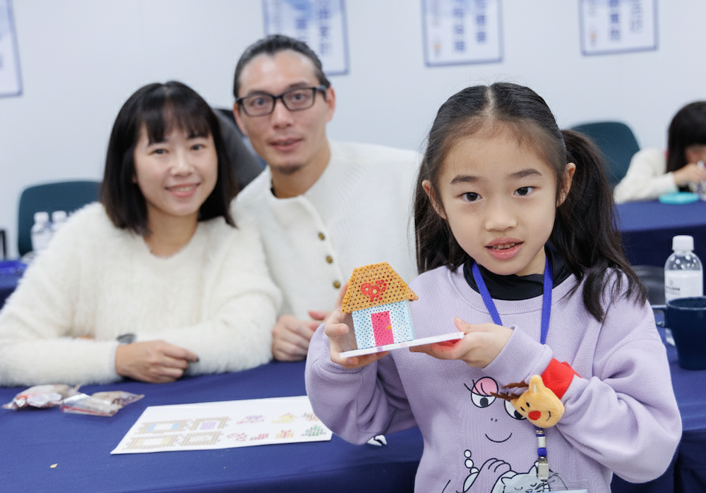 活動中安排融合「預鑄」概念的薑餅屋組裝課程,親子共同合作完成作品,讓孩子有機會走進父母的工作場域,理解營建專業與永續精神,實現跨世代永續共學。