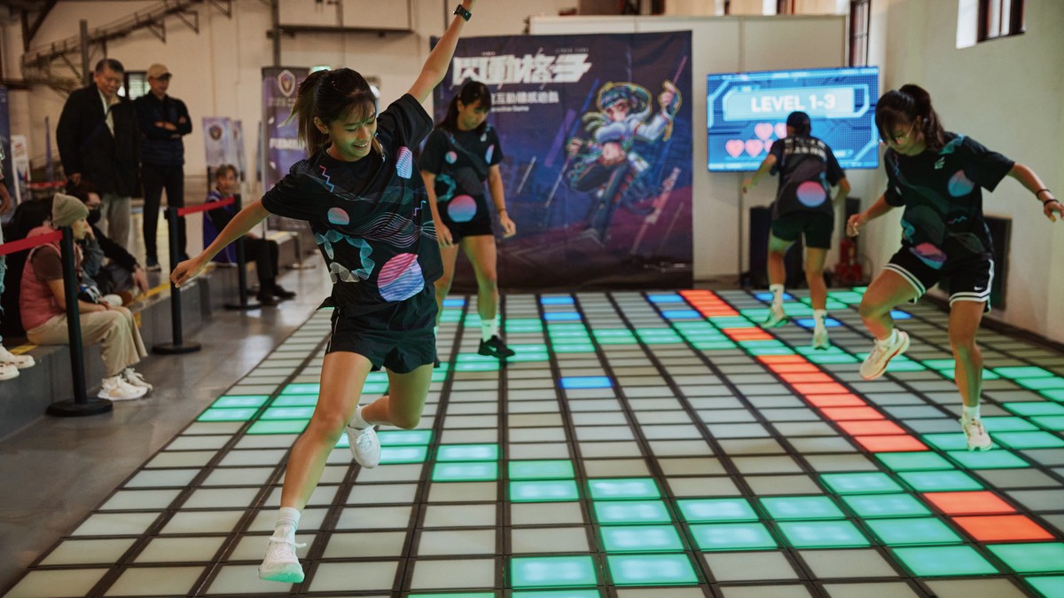 其中,體感競技項目《閃動格子》作為本屆 CCCE 的代表性賽項之一登上舞台,以節奏反應與團隊協作為核心的賽制設計,吸引現場觀眾目光。選手需在限時賽制中即時判讀關卡規律、完成走位分工,並在高壓環境下快速修正策略,過程同時考驗反應力、體能與團隊溝通能力。