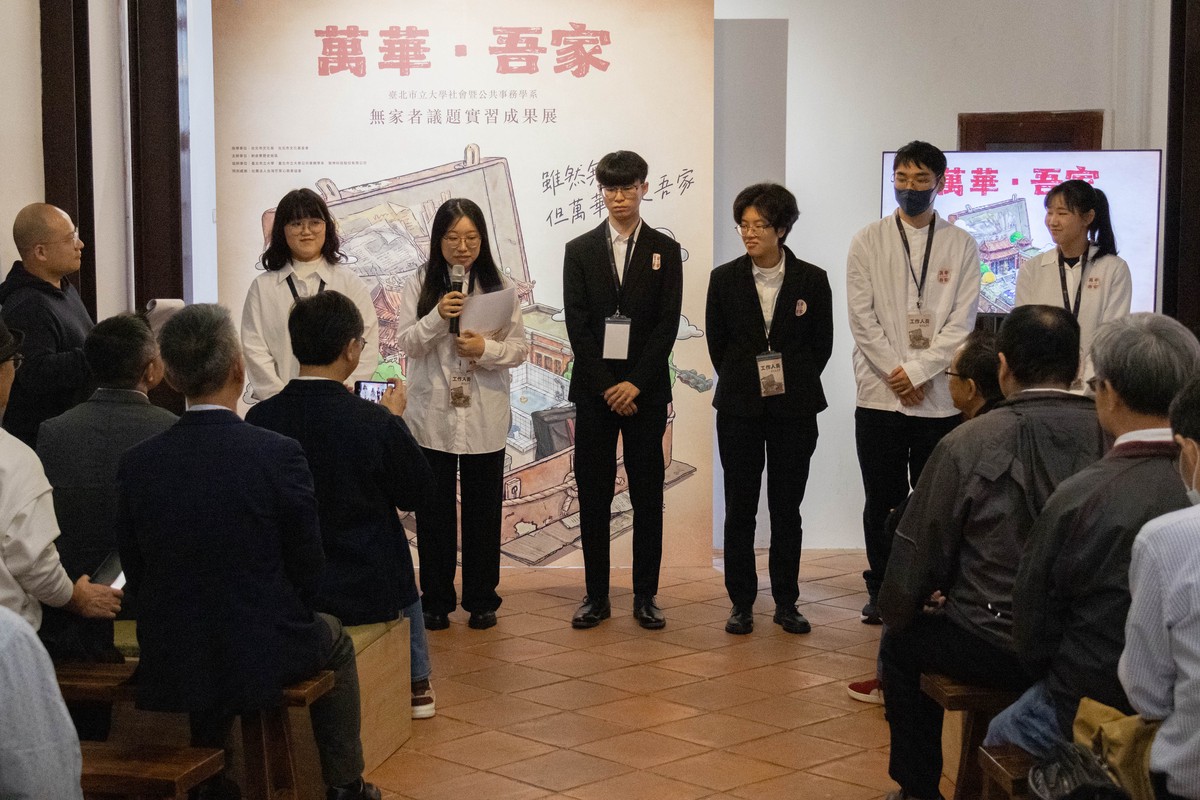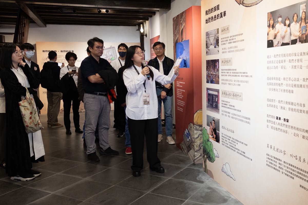 展覽命名為《萬華.吾家》,源於6位實習生在實地參與芒草心慈善協會「街遊」導覽、訪談相關經驗者與社福工作人員後的深刻感悟。學生將無家者在日常生活中面臨的制度挑戰、環境侷限與資源稀缺,轉化為豐富的故事紀錄、影像紀實與互動設計。「我們希望大眾認識的無家者,不再只是片段的刻板印象,而是完整的生命故事。」參展學生表示,透過整理田野筆記與經驗者的互動及交流,他們看見了隱藏在都市縫隙間的社會議題。展覽不僅是成果的展示,更是一場關於「理解」的邀請。