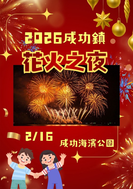迎向 2026,成功鎮公所誠摯邀請民眾參加1/1元旦升旗健走活動、2月花火之夜,以及3月元宵炸邯鄲!
